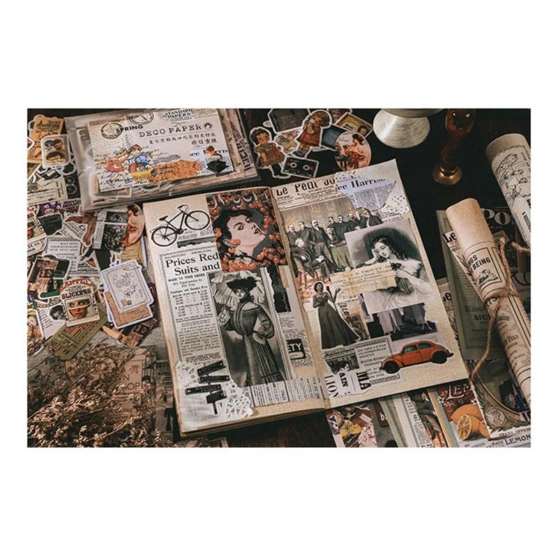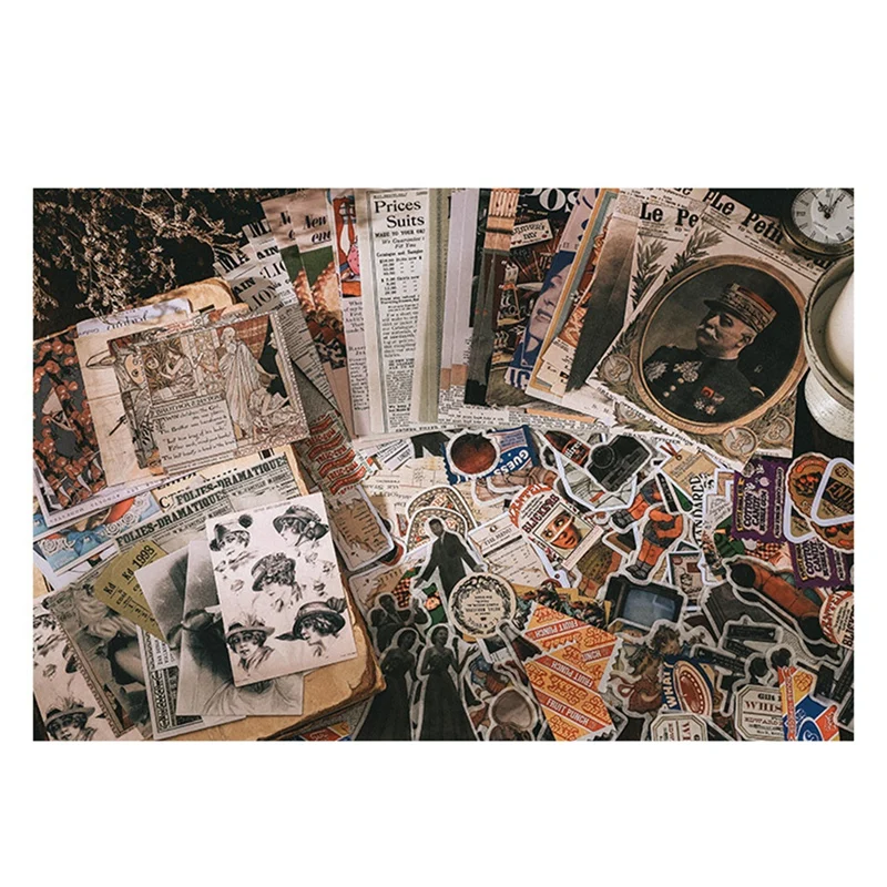 KIT DE EFEMERA DE REVISTA JUNK TEMÁTICA-Hay aproximadamente 200 piezas de papel y pegatinas surtidos con una variedad de diseños artísticos, incluyendo avatar de celebridades, anuncios de artículos de periódicos antiguos y más. ¡Perfecto para diarios basura, álbumes de recortes, collages o proyectos de arte que requieren una sensación artística!