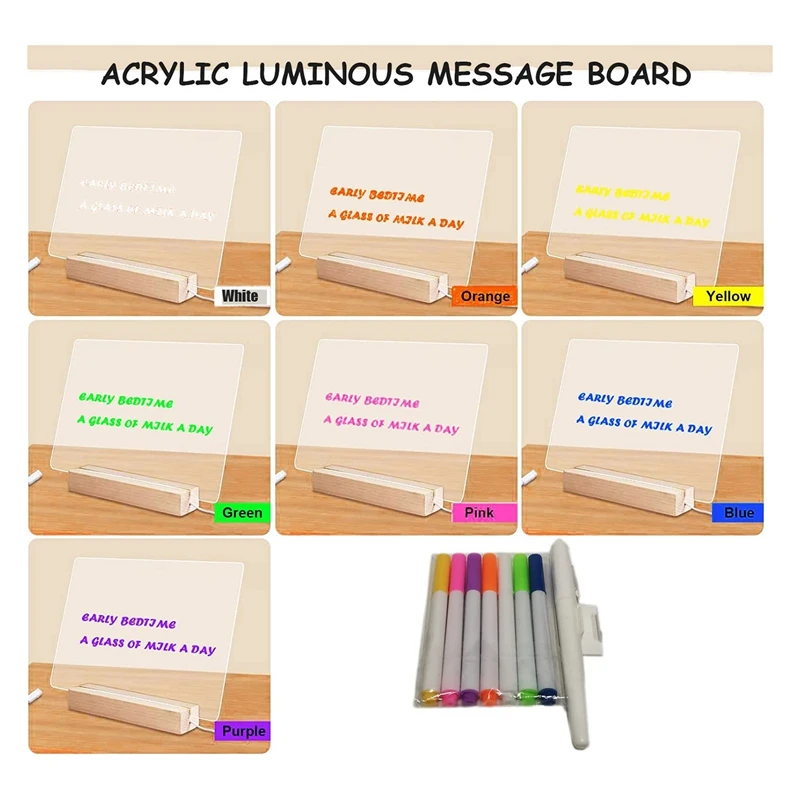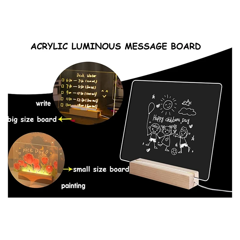 El producto incluye tablero acrílico de 11,8x7,87 pulgadas y 7,87x7,87 pulgadas, base de madera luminosa, que se puede quitar.