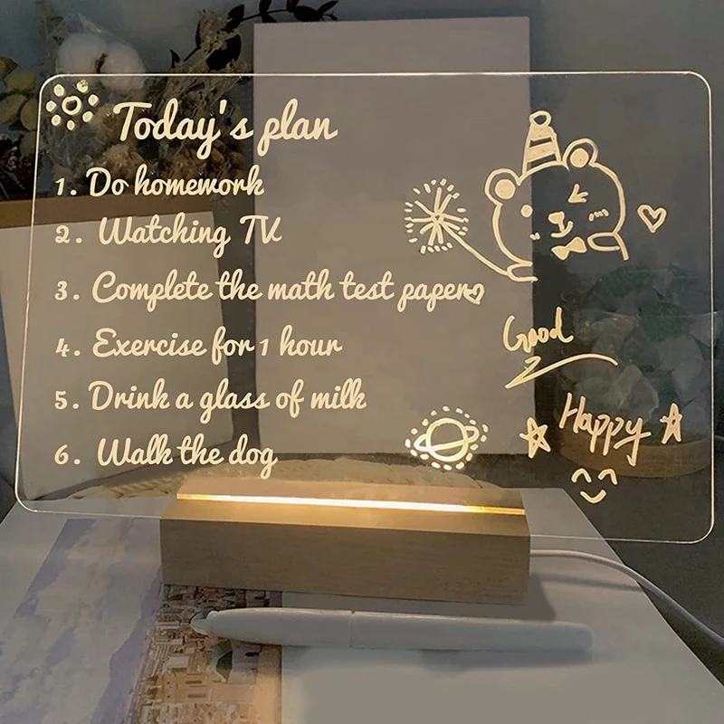 El tablero transparente acrílico limpio y ordenado puede ser graffiti de bricolaje a voluntad. La fuente es clara y visible, hermosa y exquisita. Es algo bueno para el ambiente familiar y para disfrutar de la belleza de la ceremonia de la vida.