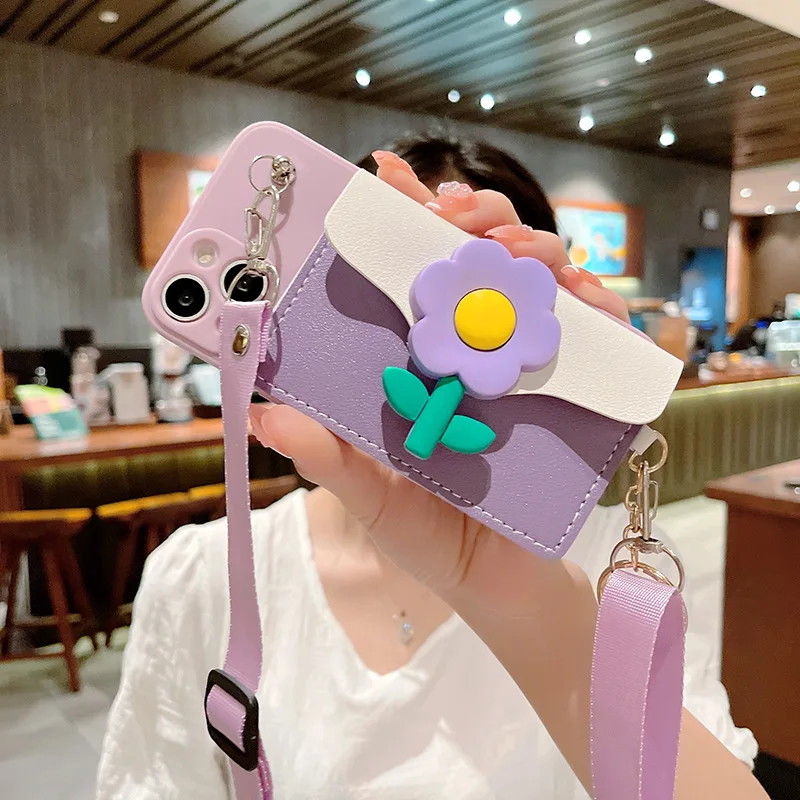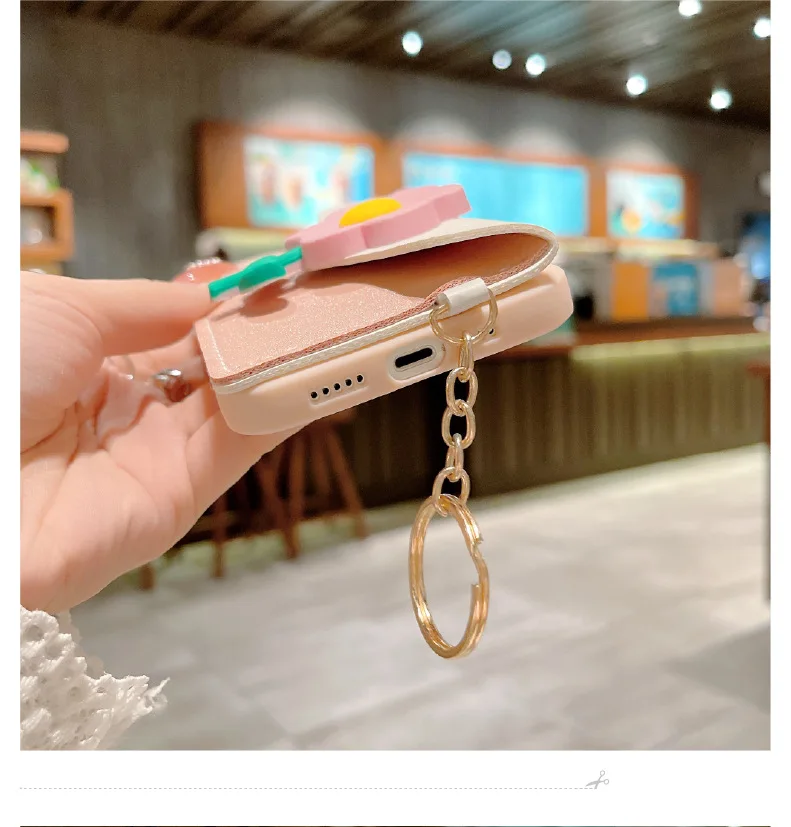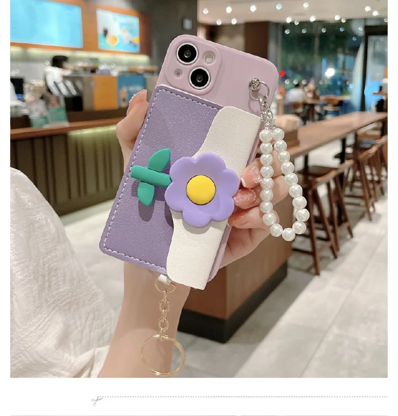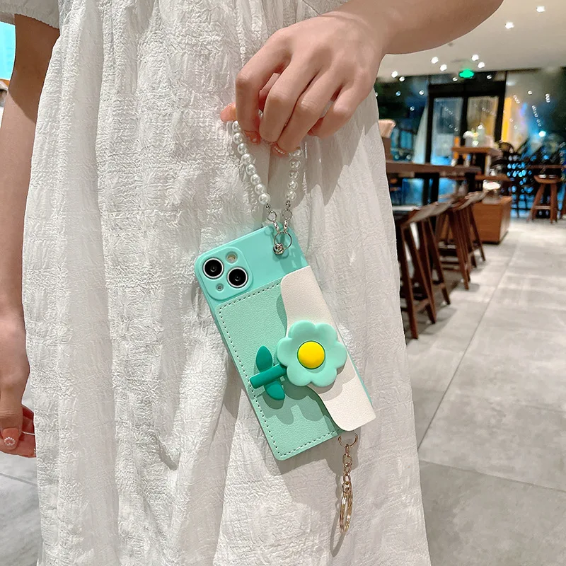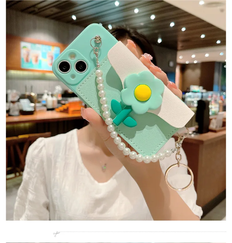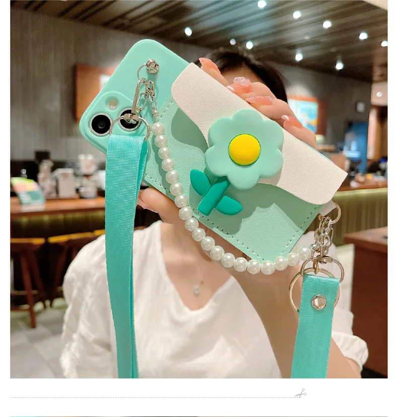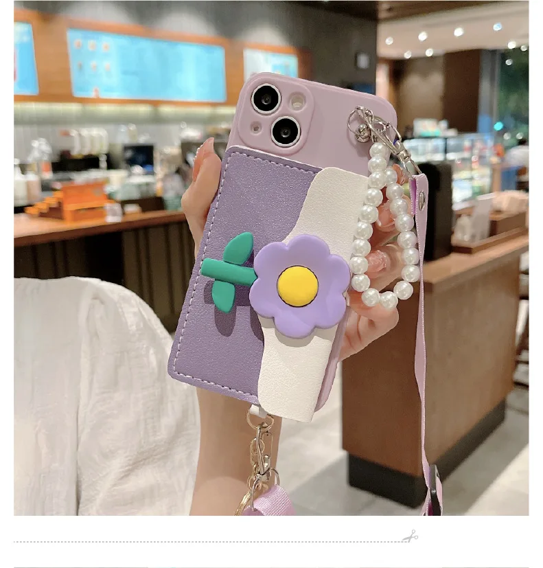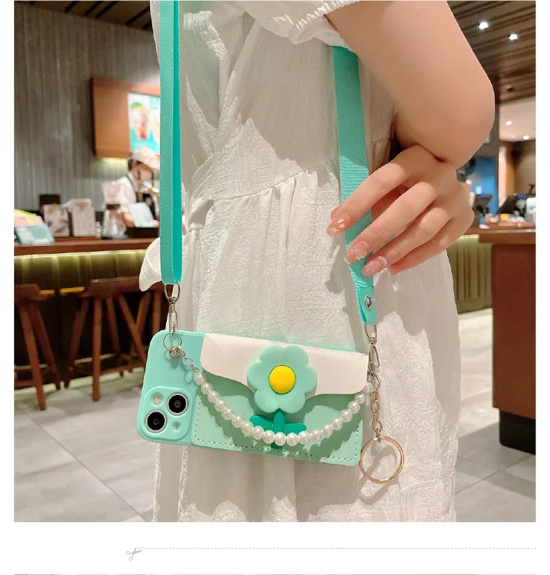 Comprar Paquete de tarjeta de flores, funda de teléfono con correa de cadena de perlas para Apple 14promax IPhone13/12