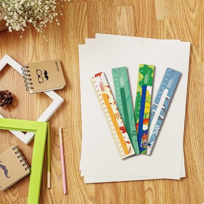 Diseño de superposiciones con estampado de dibujos animados, colores destacados, la parte iluminadora transparente y colorida de la tira ayuda al lector a rastrear cada frase, facilitar su uso en el proceso de lectura y aumentar el interés por la lectura.