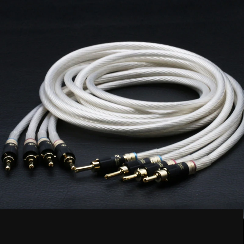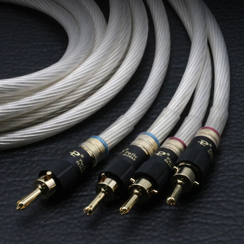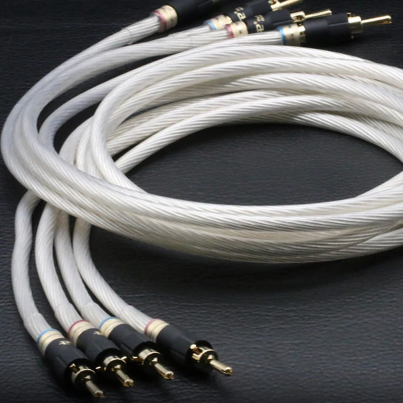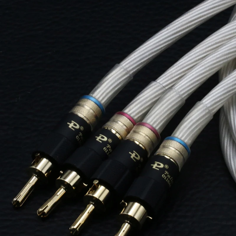 Cable de altavoz de alta fidelidad Par 5N Cable de altavoz de audiófilo plateado de cristal único Cable de altavoz con enchufes banana Pailccs