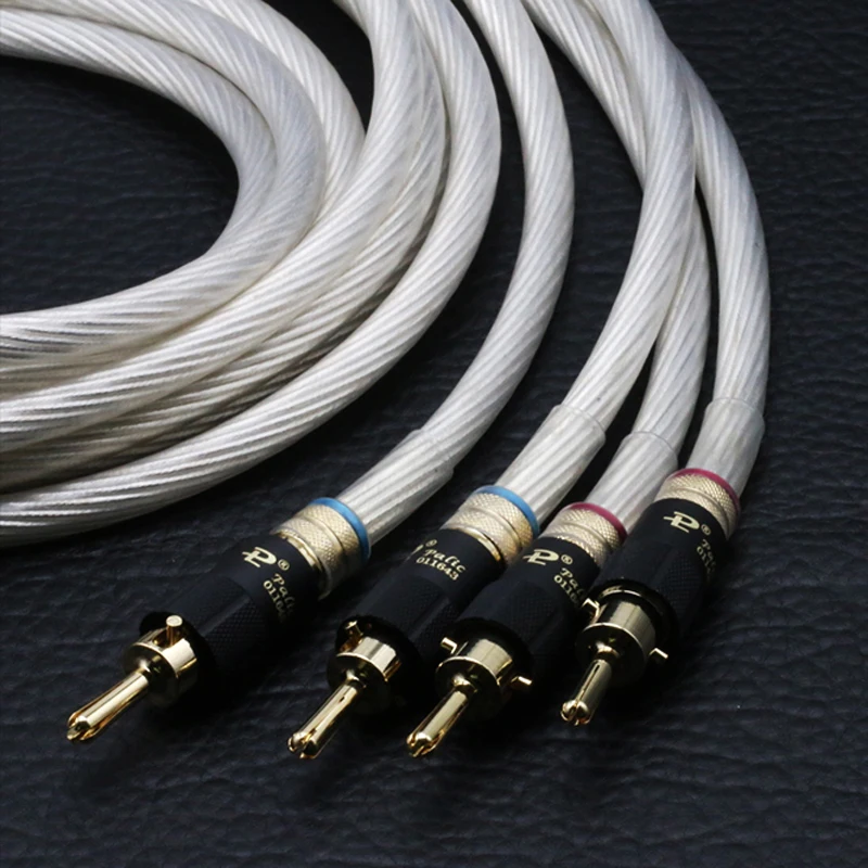 Comprar Par de cables de altavoz de alta fidelidad 5N, Cable de altavoz audiófilo de cristal chapado único, cable de altavoz con enchufes banana pailccs