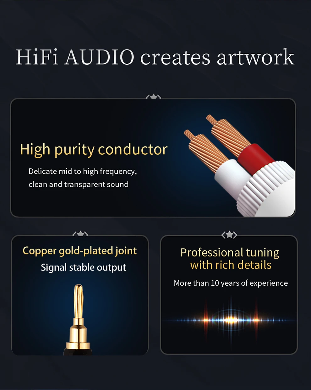 ⭐.HIFI AUDIO crea obras de arte Conductor de alta pureza Sonido delicado de media a alta frecuencia, limpio y transparente Junta chapada en oro de cobre Sintonización profesional Salida estable de señal con ricos detalles Más de 10 años de experiencia