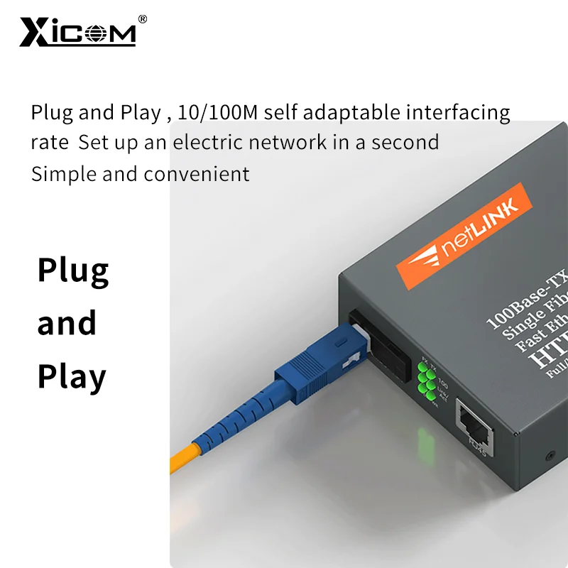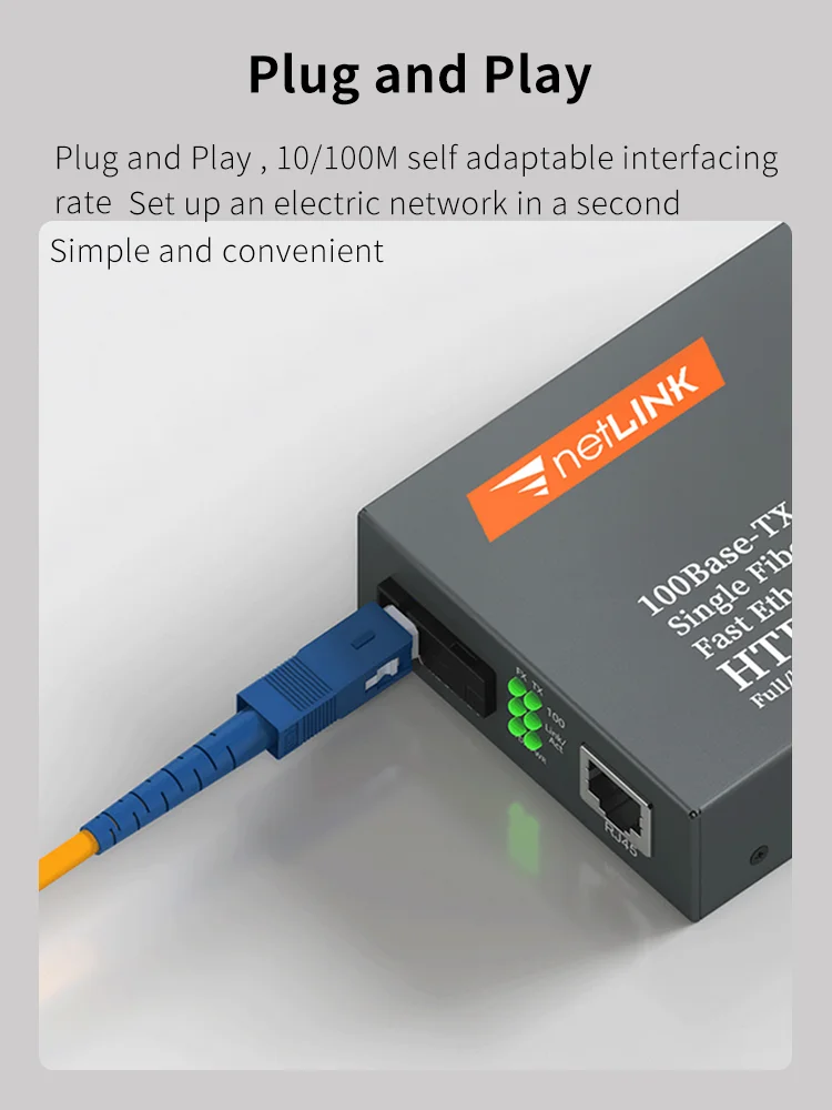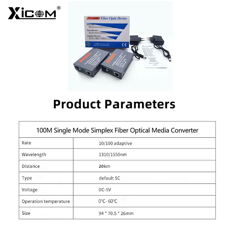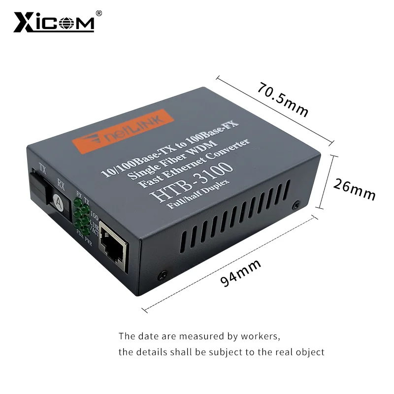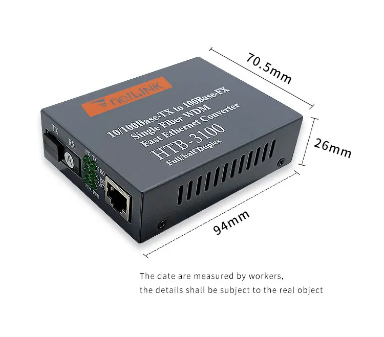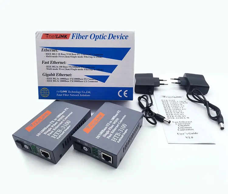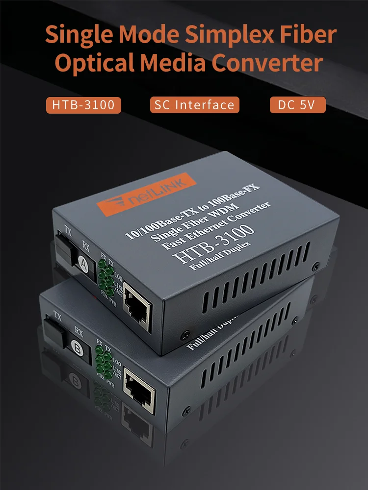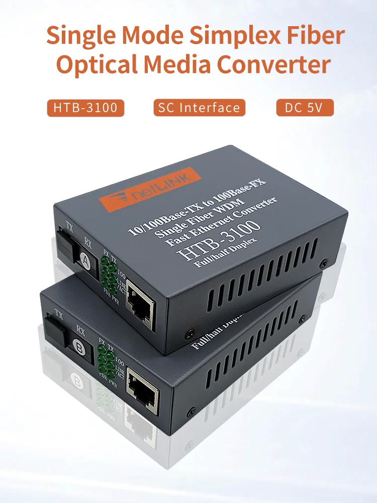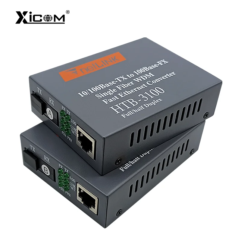 Comprar Par de convertidor de medios de fibra óptica 10/100, transceptor de fibra simple monomodo HTB-3100, convertidor SC 20KM 1310/1550nm