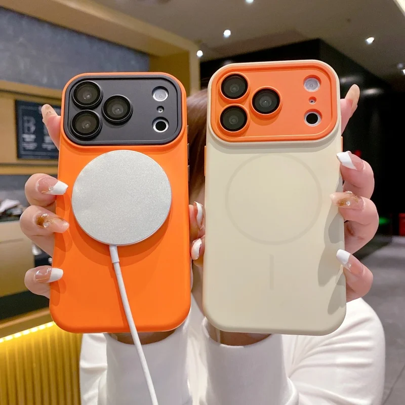 Parachoques líquido 2 en 1 de lujo a prueba de golpes para funda Magsafe para iPhone 17 Air 16 15 14 13 12 11 Pro Max Plus funda magnética mate