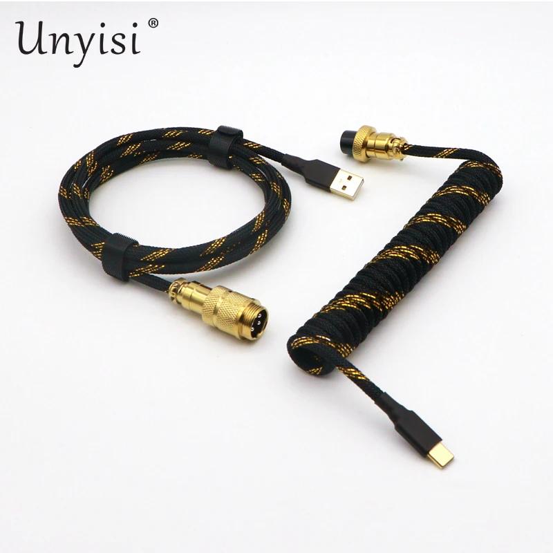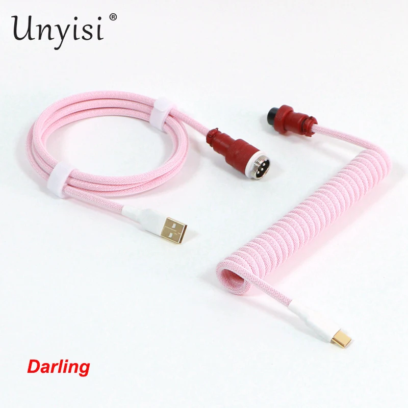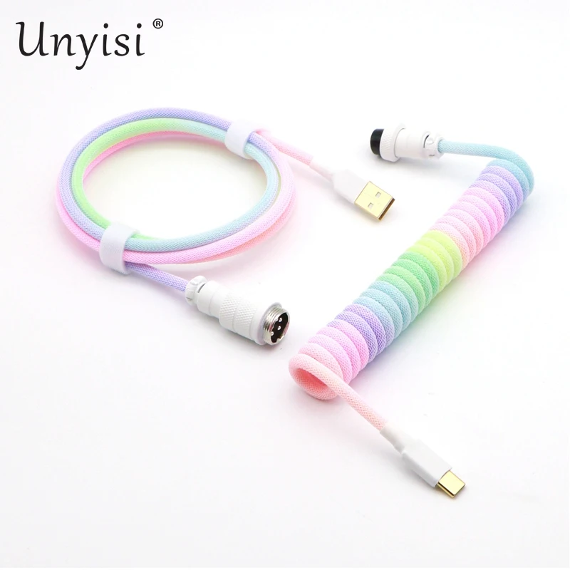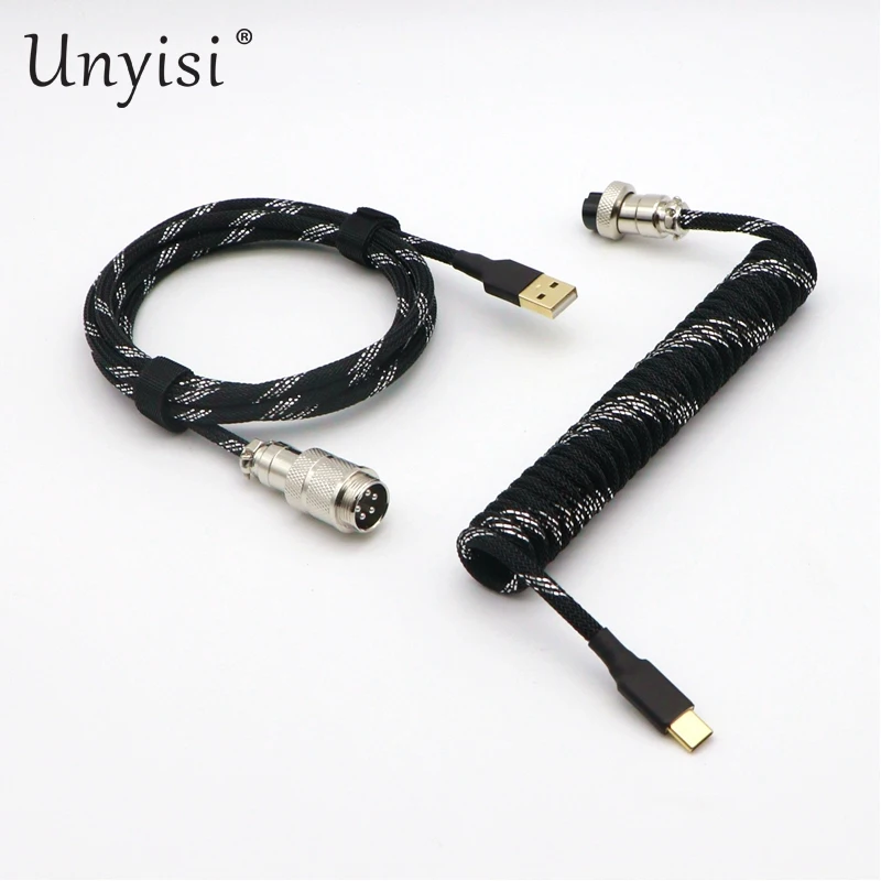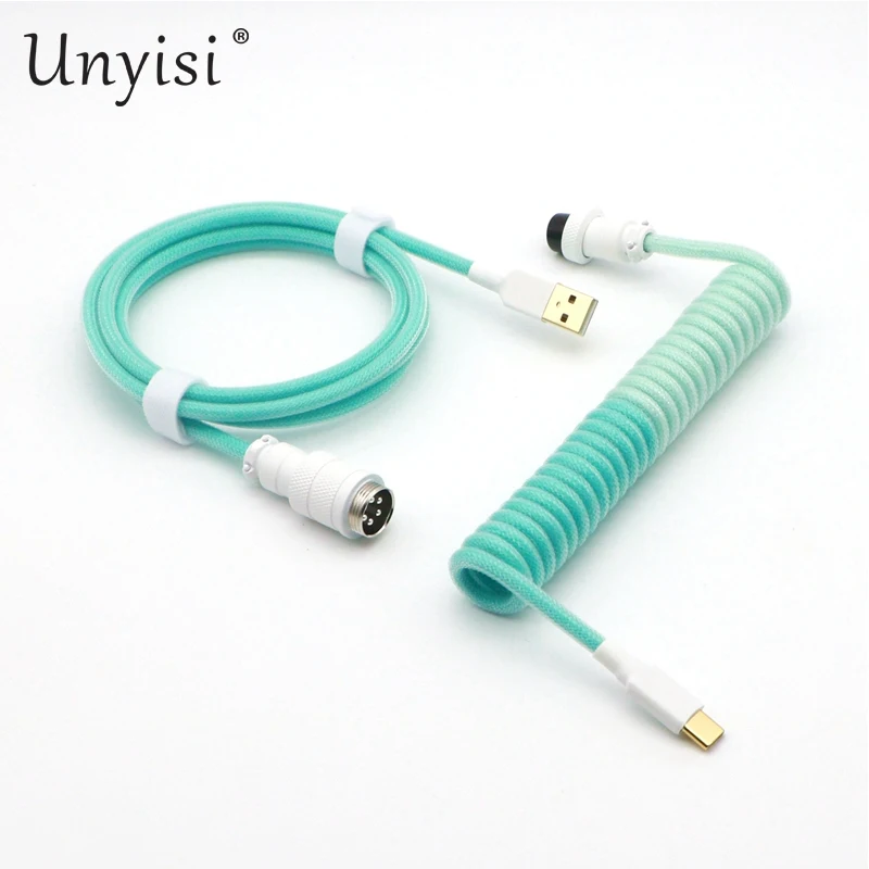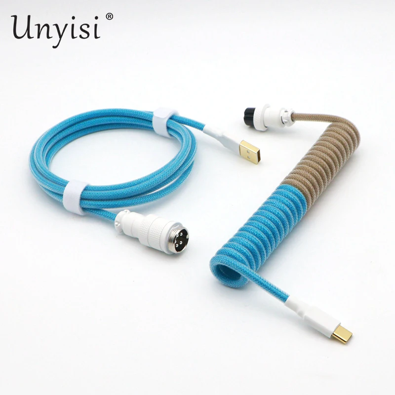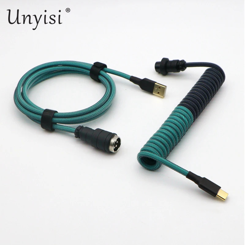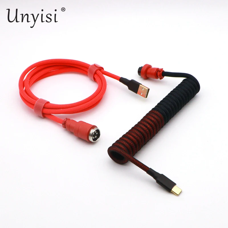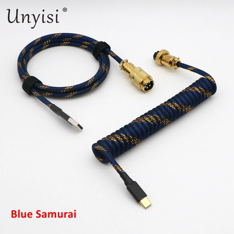 Paracord y PET hechos a mano Cable en espiral USB a tipo C de doble funda para teclado mecánico GMK Blue Samurai Red Samurai.