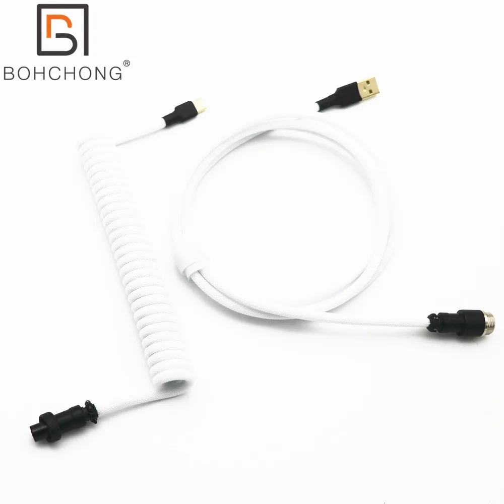 Paracord y PET Z Forma Doble Funda USB a Tipo-C Cable Enrollado para Teclado Mecánico Espiral Colorido Mate GX16 Aviador