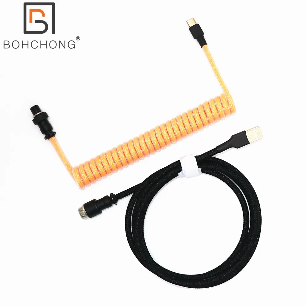 Paracord y PET Z Forma Doble Funda USB a Tipo-C Cable Enrollado para Teclado Mecánico Espiral Colorido Mate GX16 Aviador