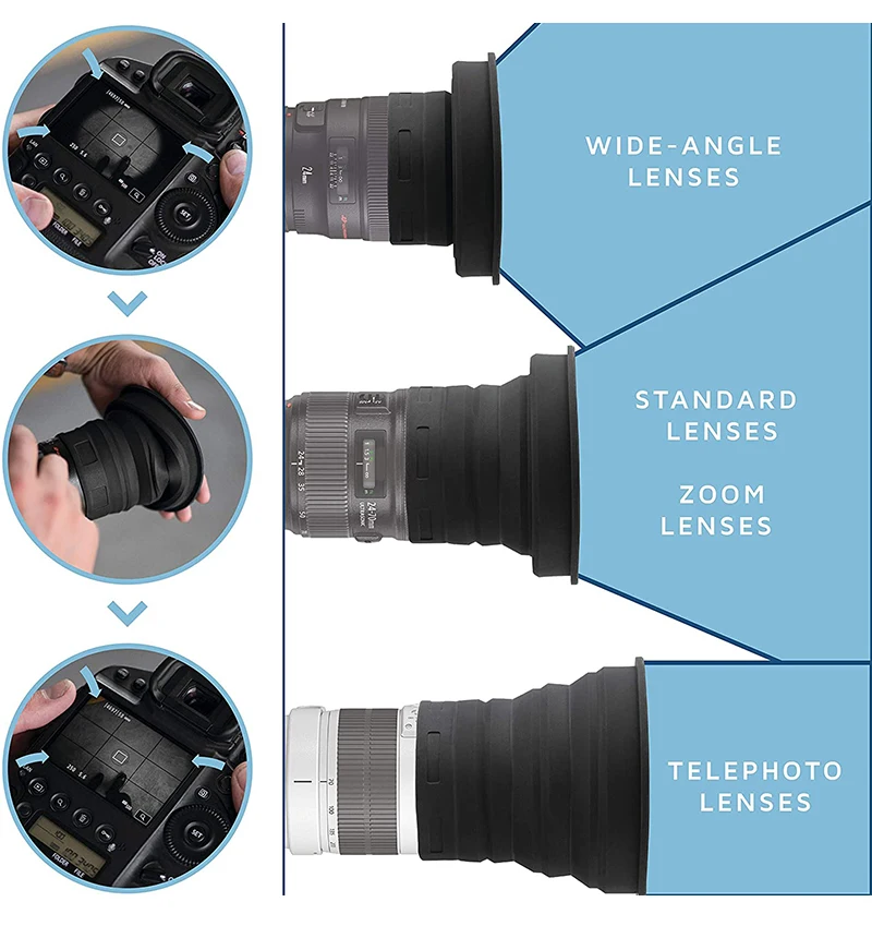 Comprar Parasol antirreflectante Universal para lente de cámara, cubierta de silicona de 54-82mm para Nikon, Canon, Sony, DSLR, estudio fotográfico, novedad de 2021