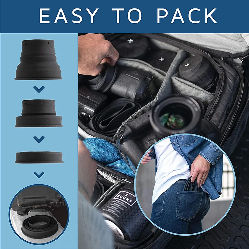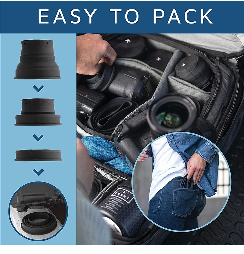 VERSÁTIL: se estira y ajusta fácilmente sobre cualquiera de sus lentes, lo que hace que sea conveniente de usar con todas sus lentes mientras libera espacio en su bolsa mientras trabaja con 99% de filtros circulares, adaptándose a su flujo de trabajo sin perder tiempo ni restringir su equipo.