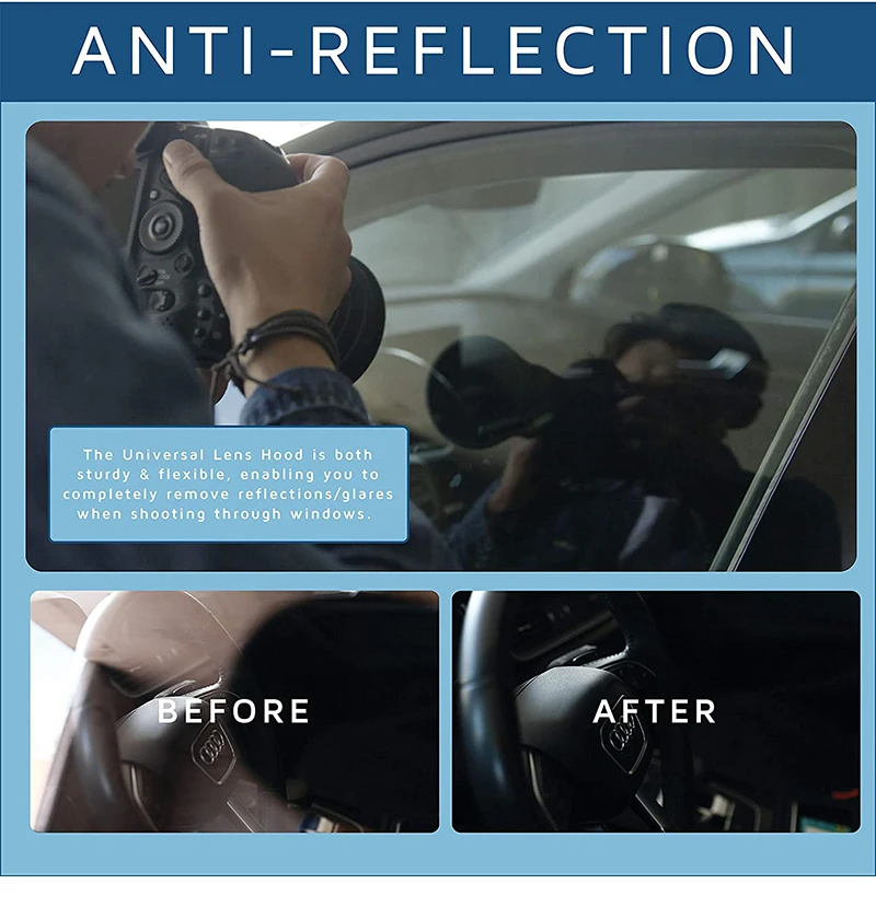 ANTIREFLECTANTE | ANTI-REFLEJO-Ya sea disparando a través de vidrio y ventanas o cualquier superficie cóncava transparente, elimina por completo los reflejos y los reflejos, lo que facilita la toma de fotos sin distracciones.