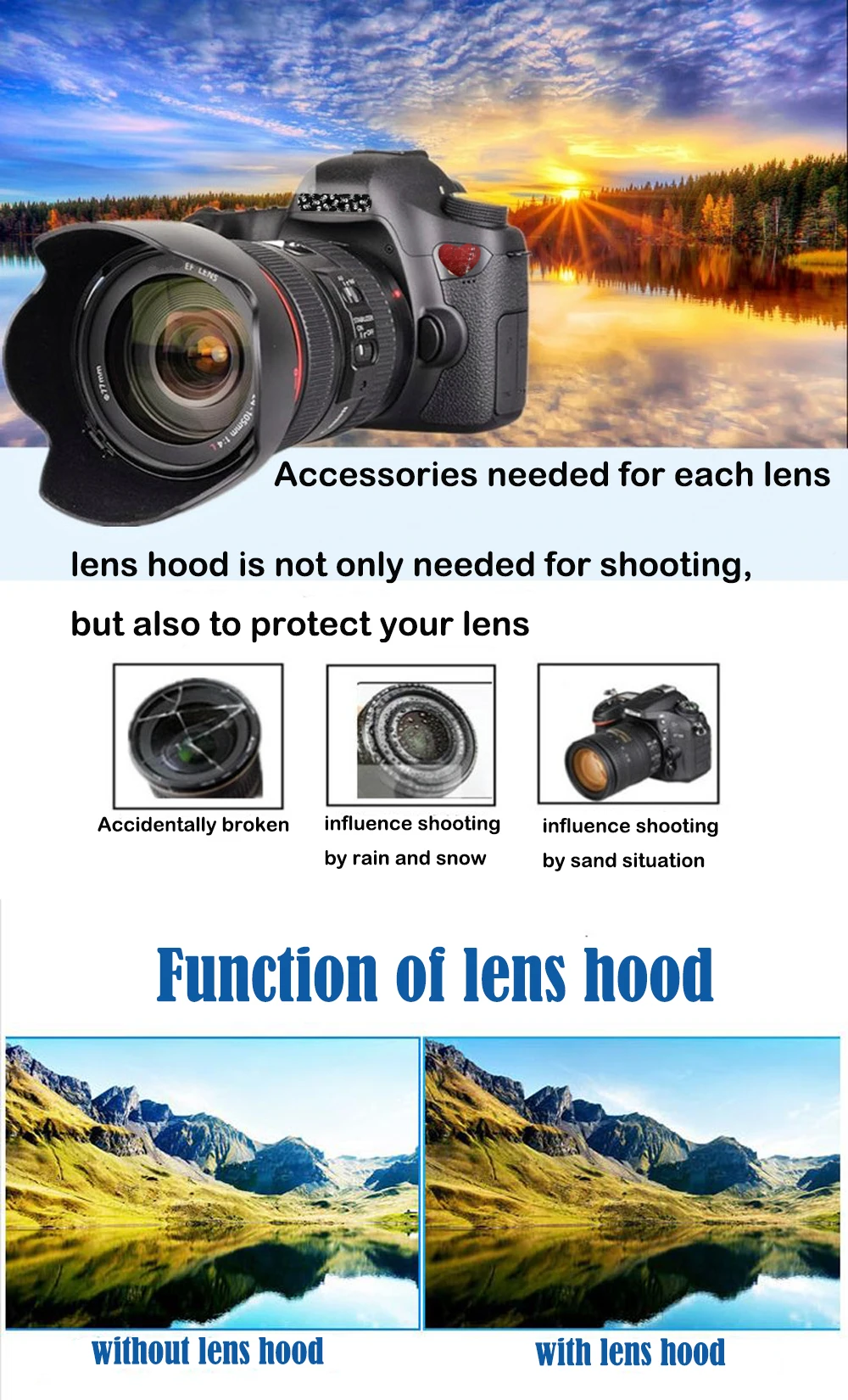 Posibilidad de utilizar lentes y filtros con parasoles en lentes.