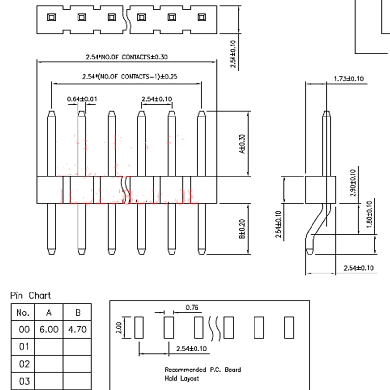 Pasador de Fila Única, Pasador Horizontal, 2,54mm, MM, 10P, 10P, 5P, 6P, 8P, 10P, 20P, 30P, 40P