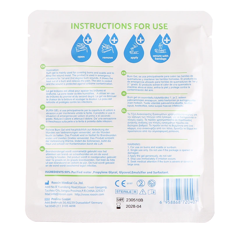 2. Para tratamientos rápidos, el vendaje para quemaduras puede aliviar y enfriar quemaduras, escaldaduras y quemaduras solares.