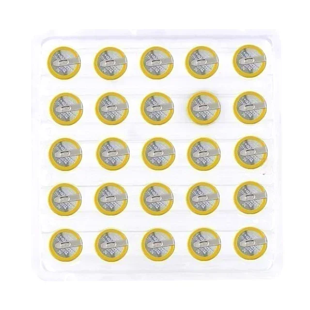 Batería de botón CR2032 de 100-25 piezas con pies de soldadura horizontales de 2 pines, pilas de botón de litio de 210mAh y 3V con pestañas de soldadura