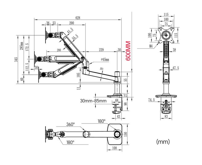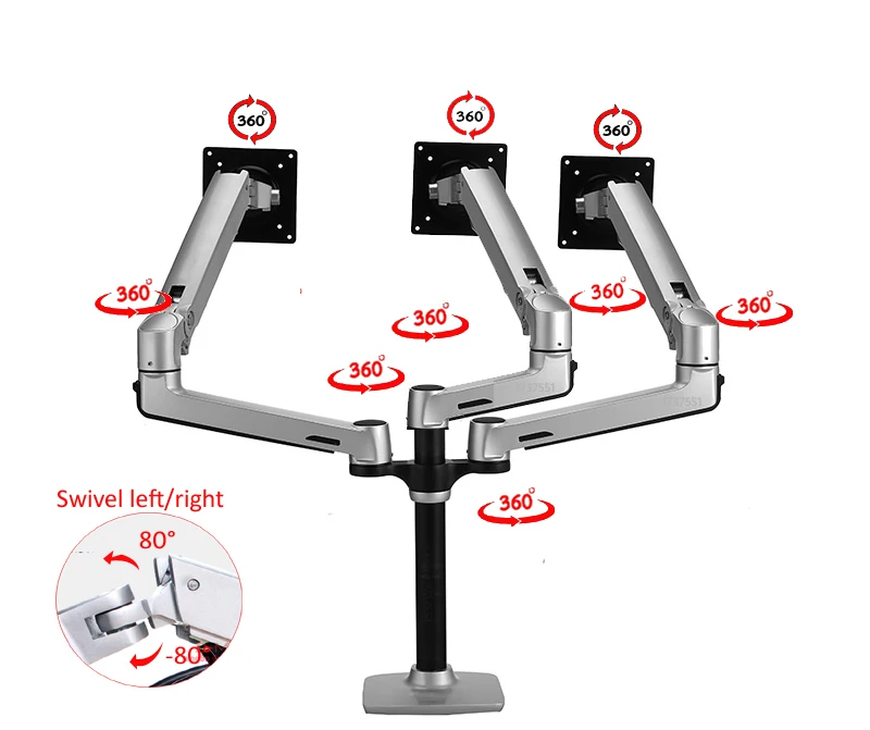 Comprar Pasador de abrazadera de aluminio DL-8000, brazo largo de 15 "-32", tres soportes para monitor lcd, soporte de escritorio, brazo de resorte mecánico