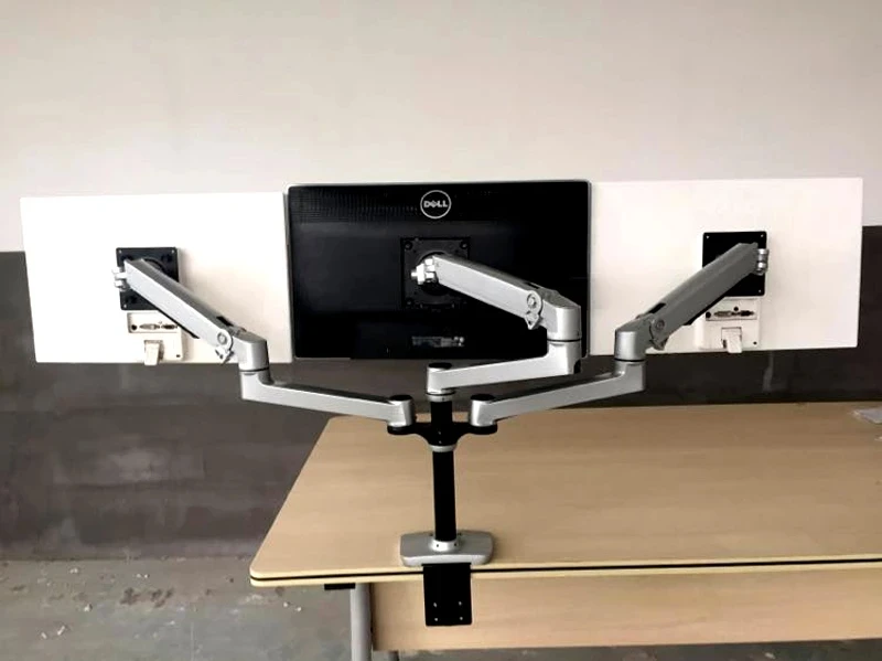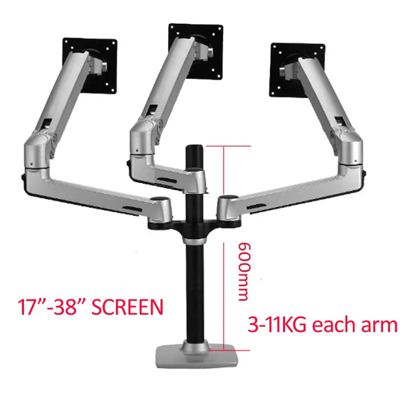 Comprar Pasador de abrazadera de aluminio DL-8000, brazo largo de 15 "-32", tres soportes para monitor lcd, soporte de escritorio, brazo de resorte mecánico