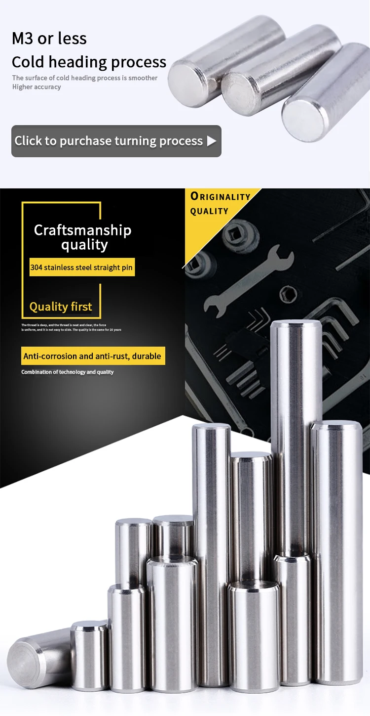 Pasador cilíndrico de acero inoxidable 1000, eje de espiga de localización sólida, barra de Metal con bloqueo de fijación sólida, M1, M1.2, M1.4, M1.5, M2, M2.5, M3, 304 piezas