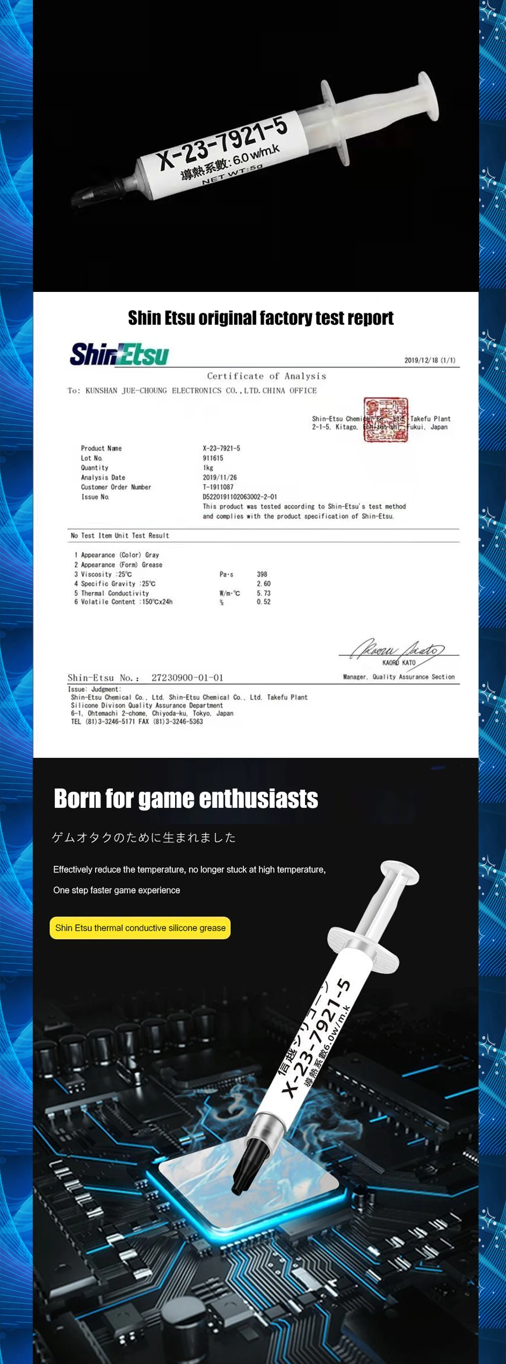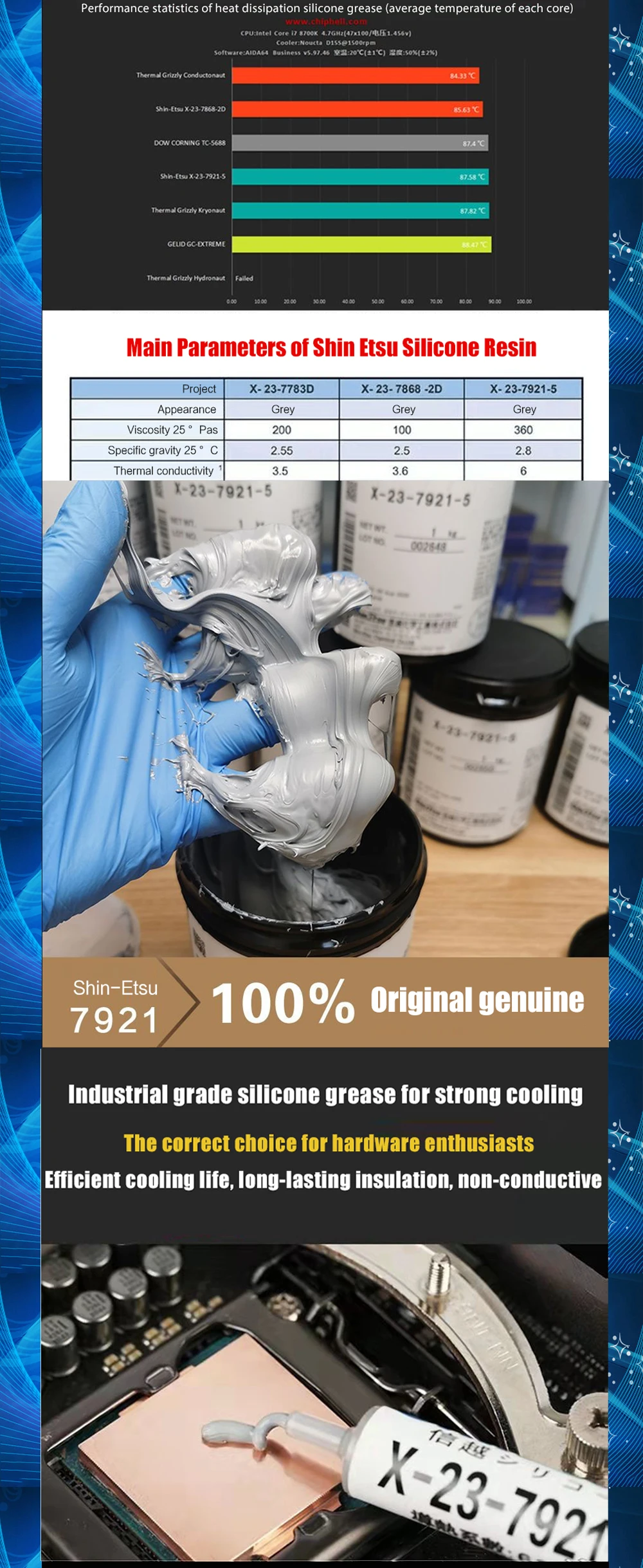 Comprar Pasta de grasa conductora térmica, jeringa Shin Etsu 7921, 7868, 1g, 3g, 5g, 10g, CPU, PC, Notebook, refrigeración, Original, auténtico