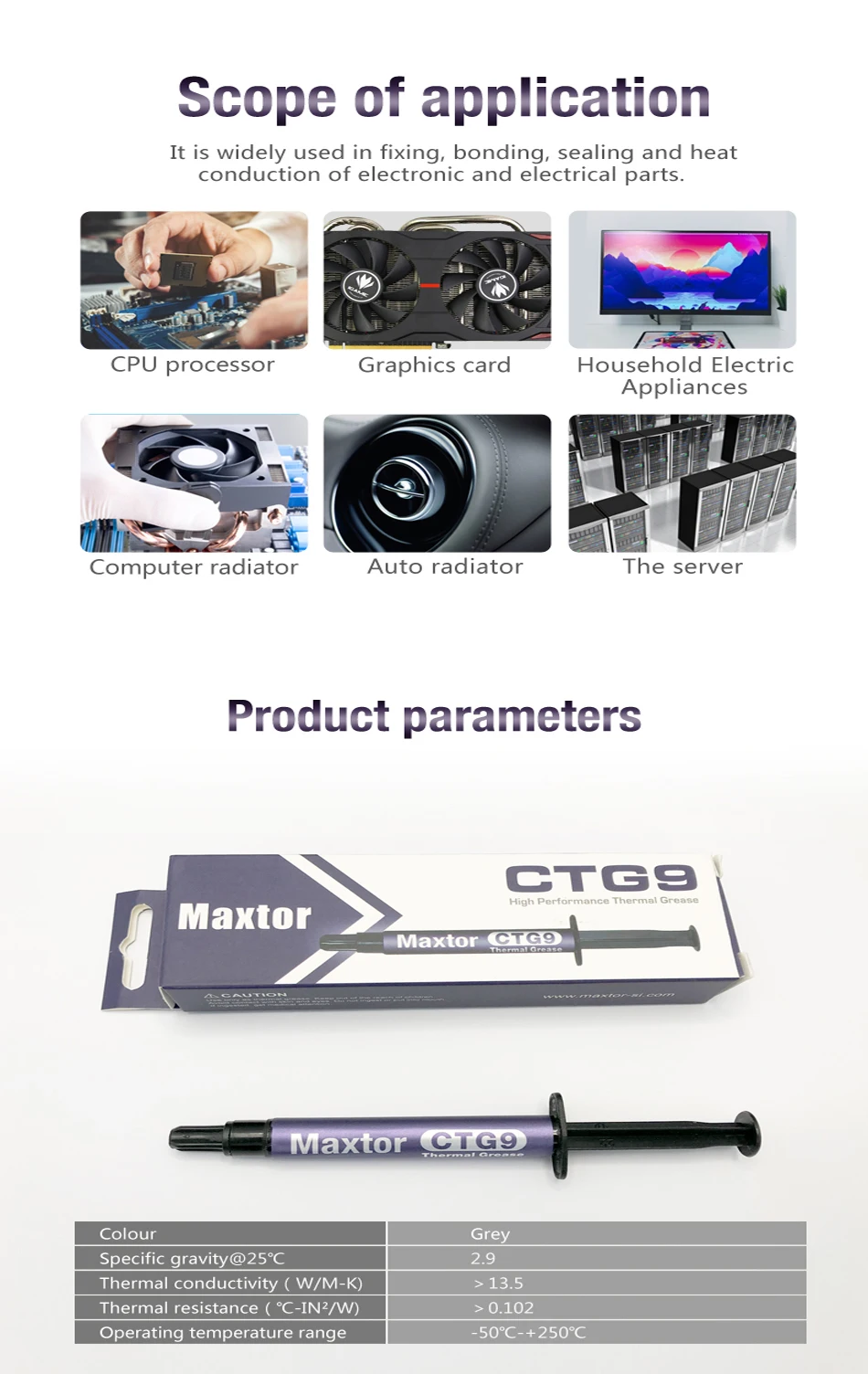 Comprar Pasta de grasa térmica Maxtor CTG9, compuesto de silicona de 13,5 W/mk para CPU, procesador de disipador de calor, refrigeración GPU, yeso disipador de calor conductor