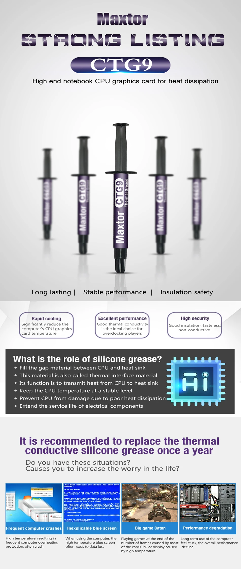 Maxtor CTG9 13,5W/m-k Nano pasta de grasa térmica compuesto de silicona para CPU disipador de calor procesador GPU refrigeración