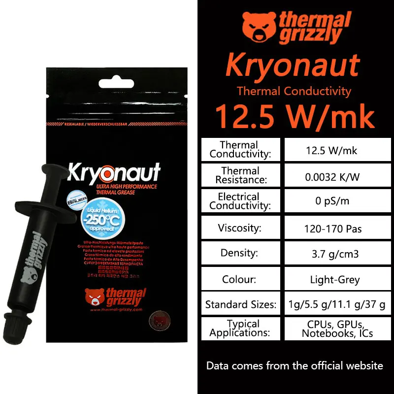 Kryonaut térmico Grizzly La pasta térmica de alto rendimiento para enfriar todos los procesadores, tarjetas gráficas y disipadores de calor en computadoras y consolas