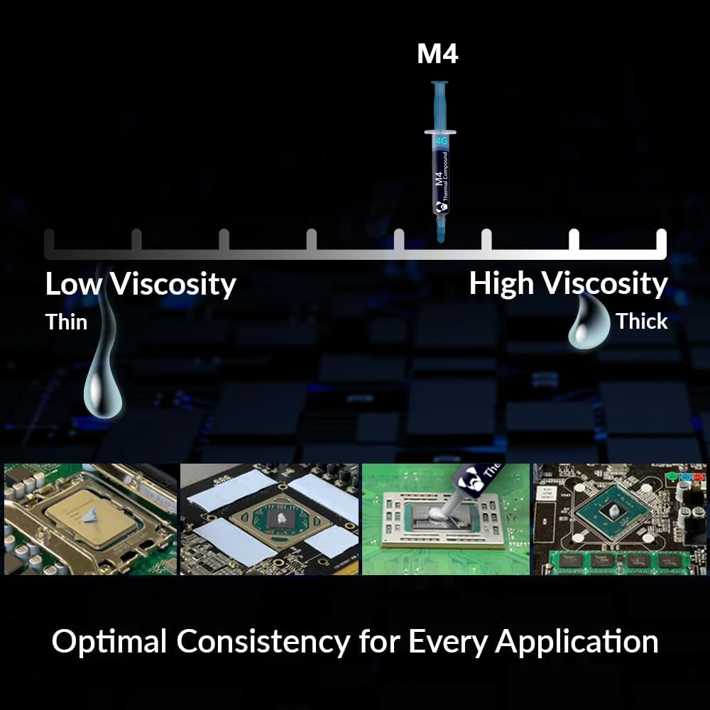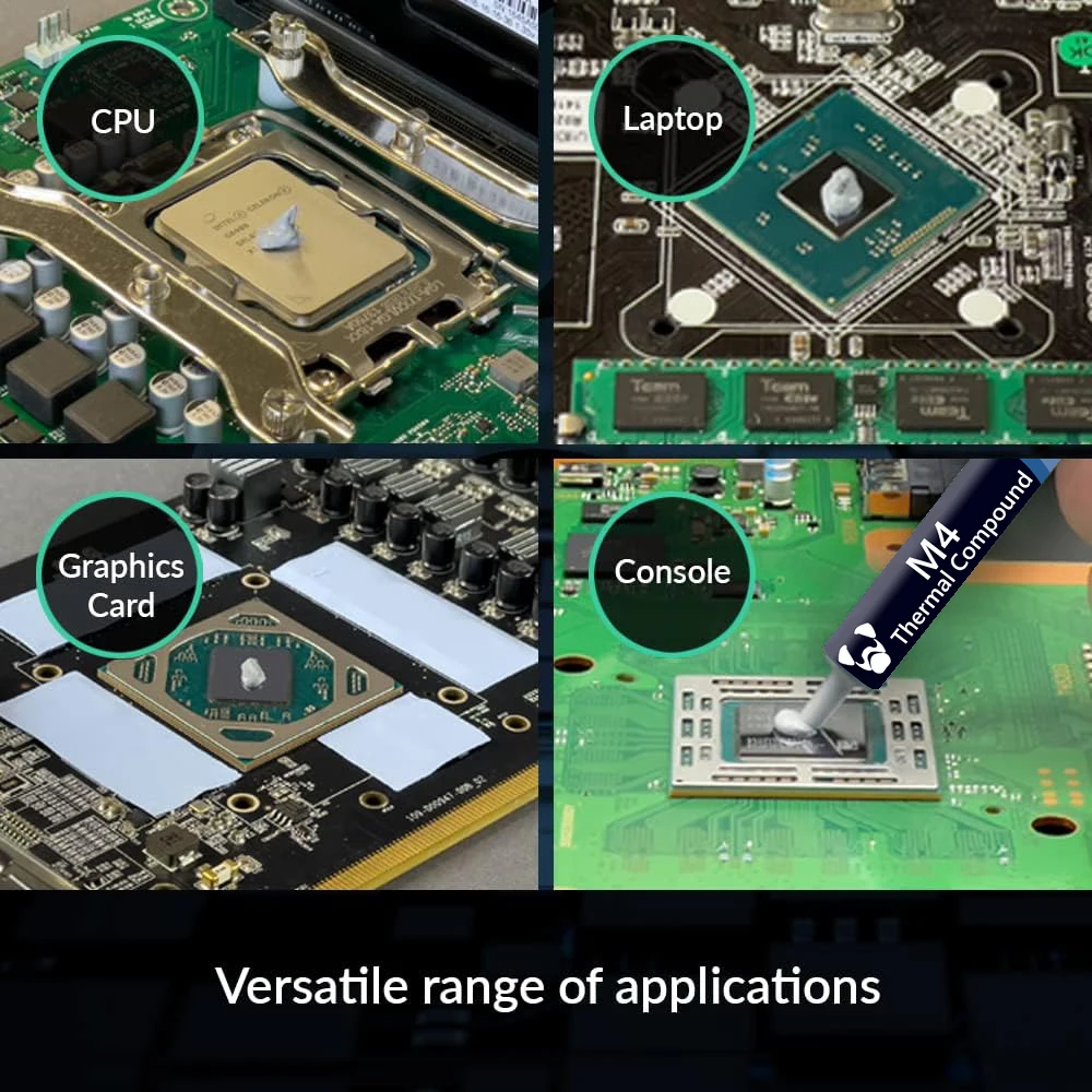 【Fácil de aplicar】 Con una consistencia ideal, el M4 es muy fácil de usar, incluso para principiantes. Las posibilidades para su aplicación y la forma más efectiva de evitar huecos entre la CPU y el enfriador que le mostramos en el video.