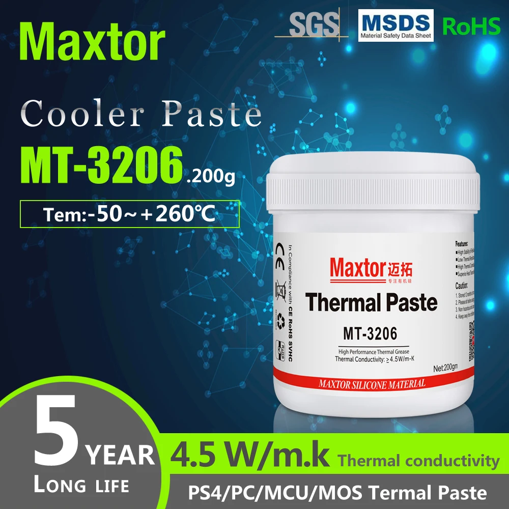 Pasta térmica Maxtor MT3206 4,5 W/m-K 200g PC CPU GPU PS4 ordenador 5G MCU equipo ventilador enfriador disipador térmico pasta de grasa