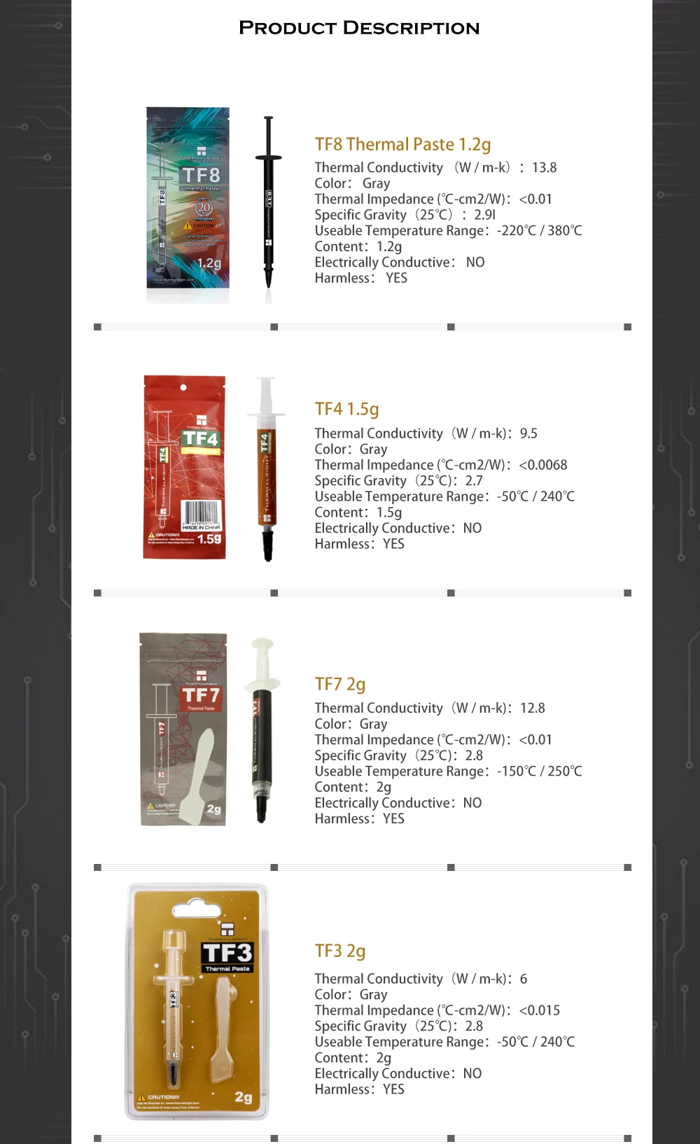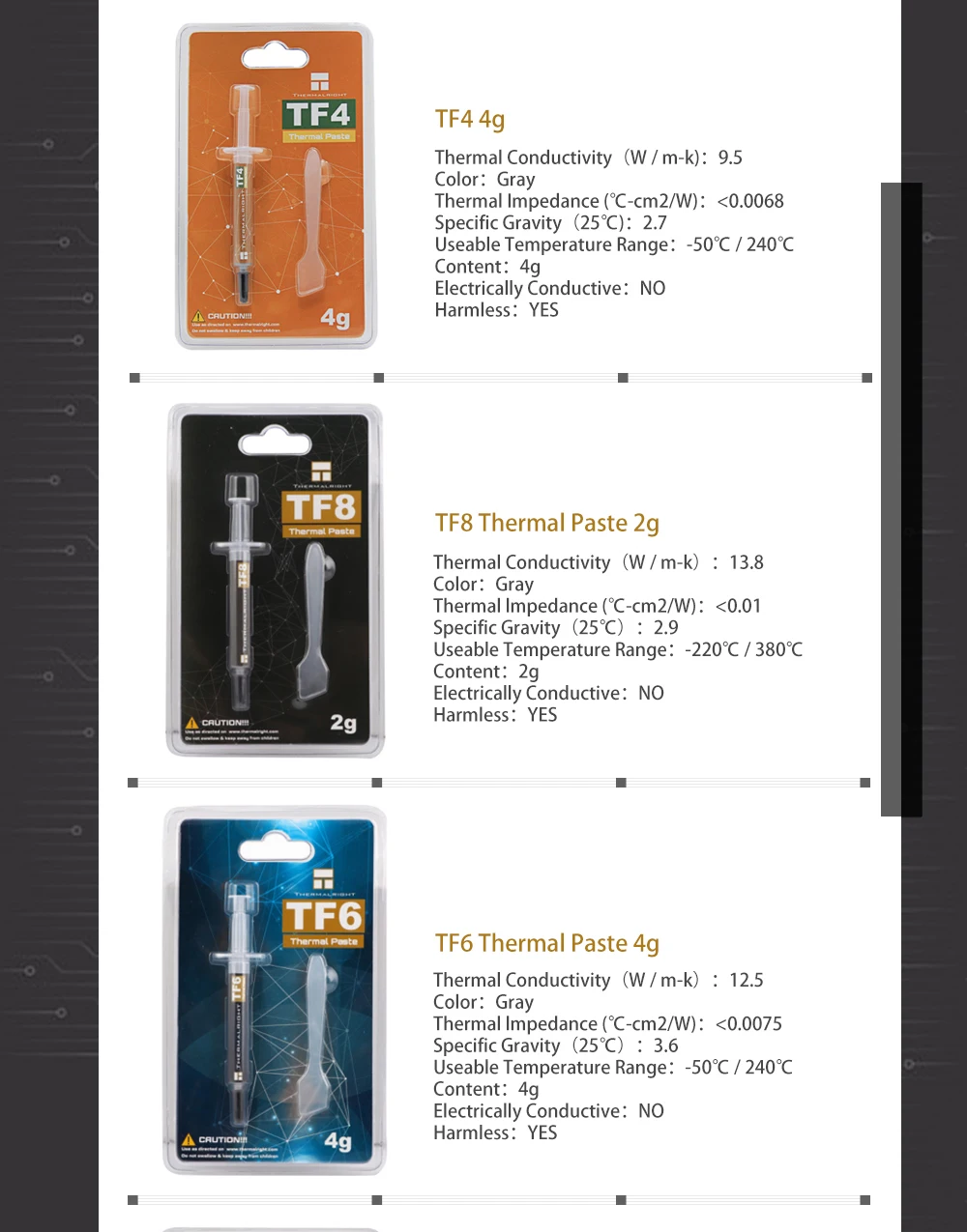 Pasta térmica TF3 TF4 TF6 TF7 Thermalright para CPU GPU Chipset de tarjeta gráfica, sistema de refrigeración de ordenador con almohadilla de refrigeración de 6-13,8 W/m-k