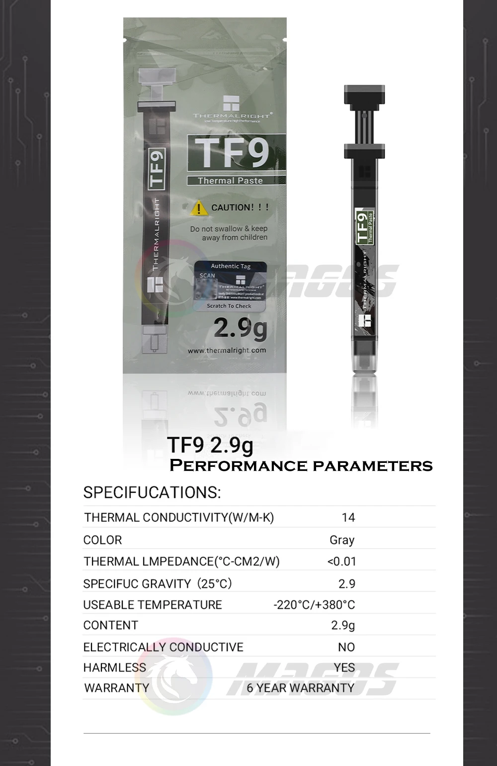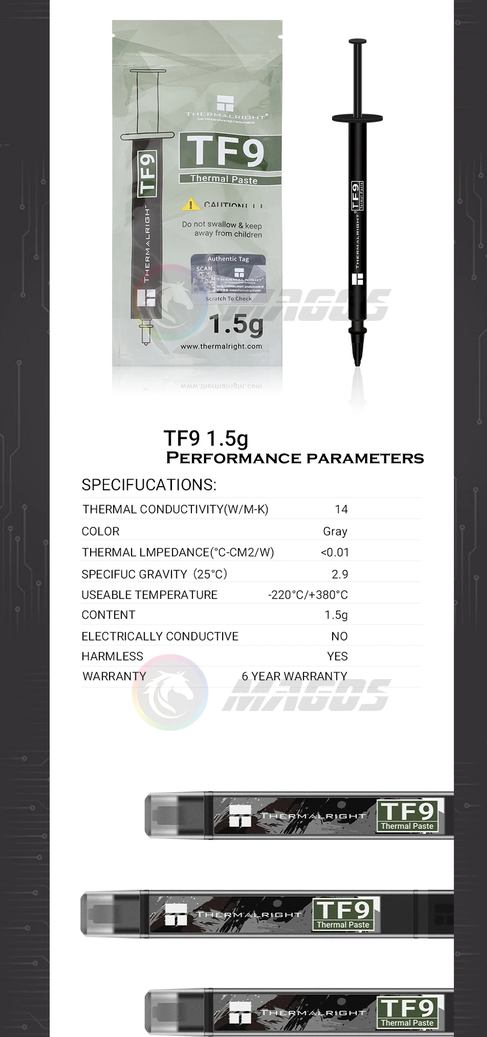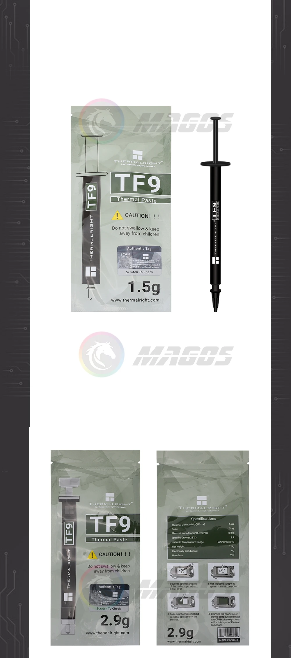 Grasa de pasta térmica Thermalright TF9 de 14 W/m-K, 1,5g/2,9g con compuesto térmico raspador para CPU/ordenador portátil/GPU