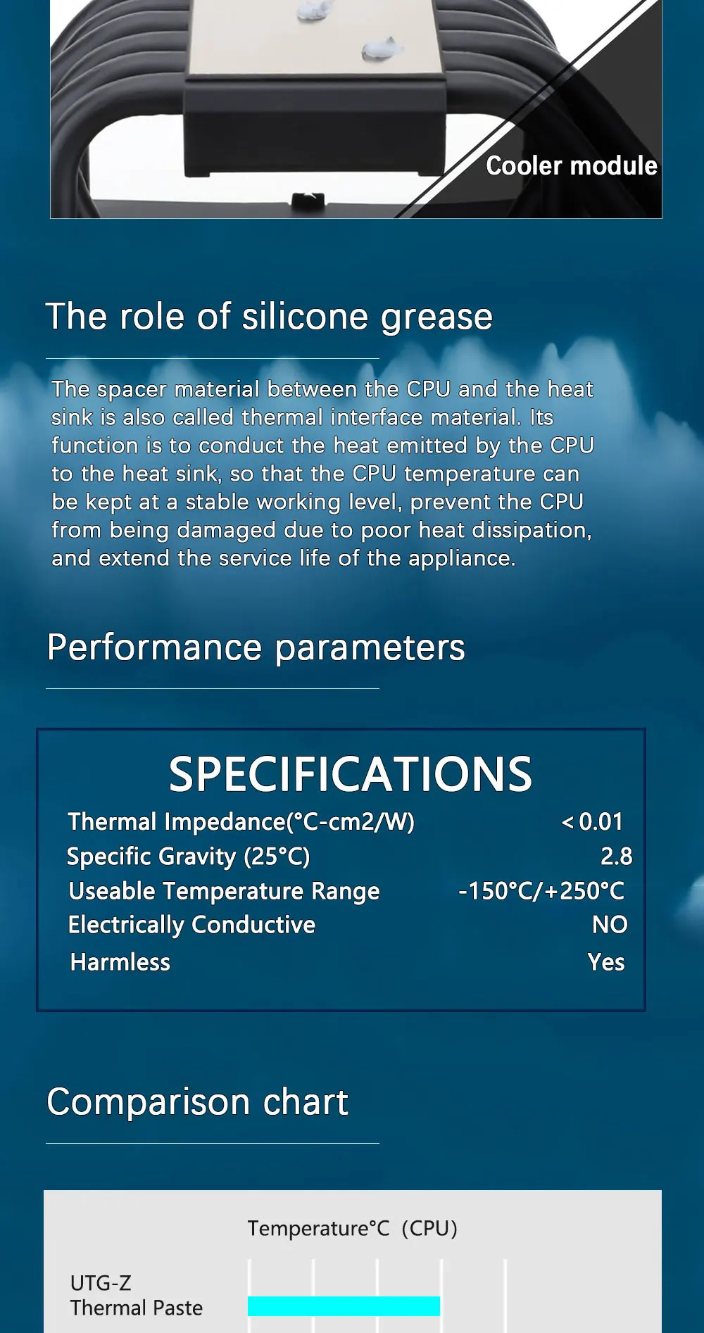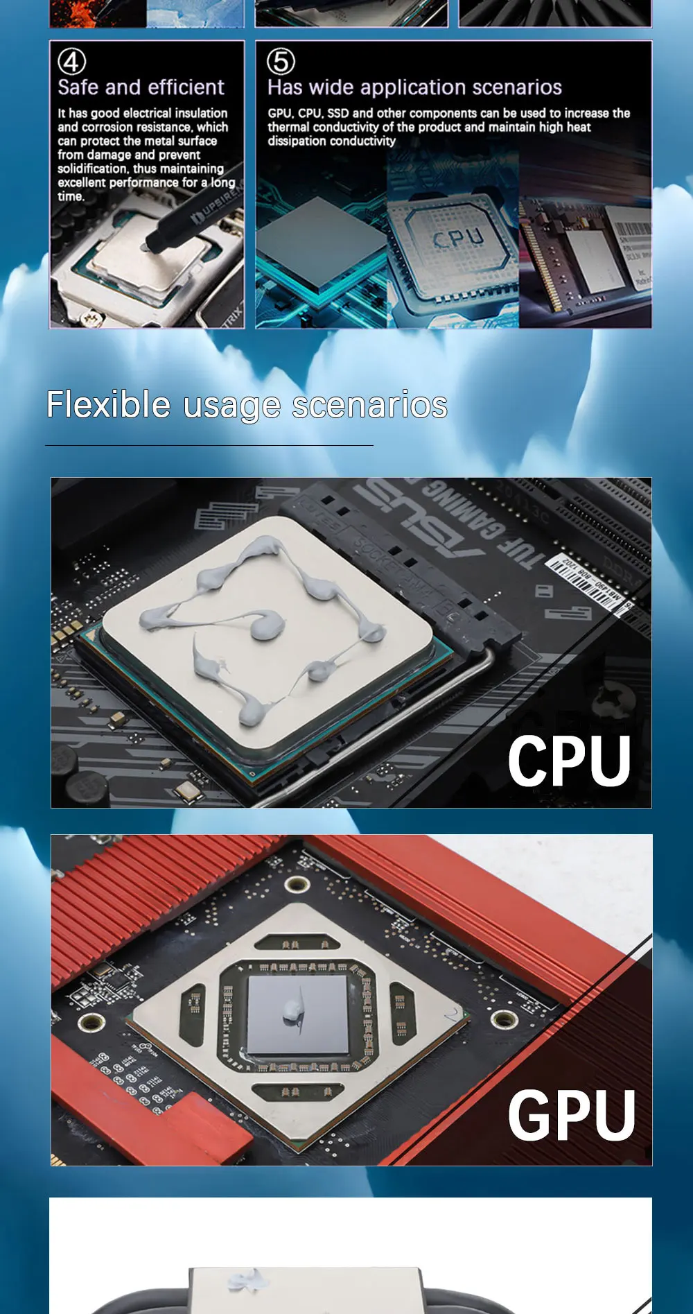 A diferencia del compuesto térmico de metal y silicio, el UTG-Z no hace concesiones con el tiempo.Una vez aplicado, no es necesario volver a aplicarlo ya que durará al menos 8 años.
