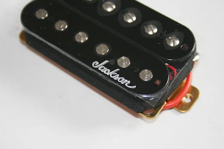 Pastilla Humbucking de alto rendimiento Jackson, pastilla de alta potencia de aluminio, níquel y cobalto de alta calidad, el tono es claro y potente, los valores de resistencia de ambas pastillas son cercanos a 19K, espaciado entre puntos magnéticos 50/52.Hecho en Indonesia, línea doble, función de corte sin orden, la pastilla de mástil es una línea roja, la pastilla de puente es negra, tornillo con resorte.StayJACKSON JSSeries de guitarras eléctricas, comoJS32 JS22Son comunes。Es más económico volver a montar algunas guitarras eléctricas con un rendimiento reducido.
