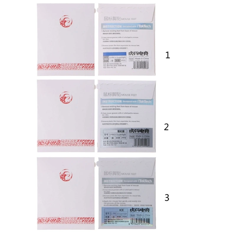 Las pegatinas originales de pie de ratón de Logitech tienen dos capas, que deben rasgarse antes de usar las pegatinas de pie de amuleto de Tigre.