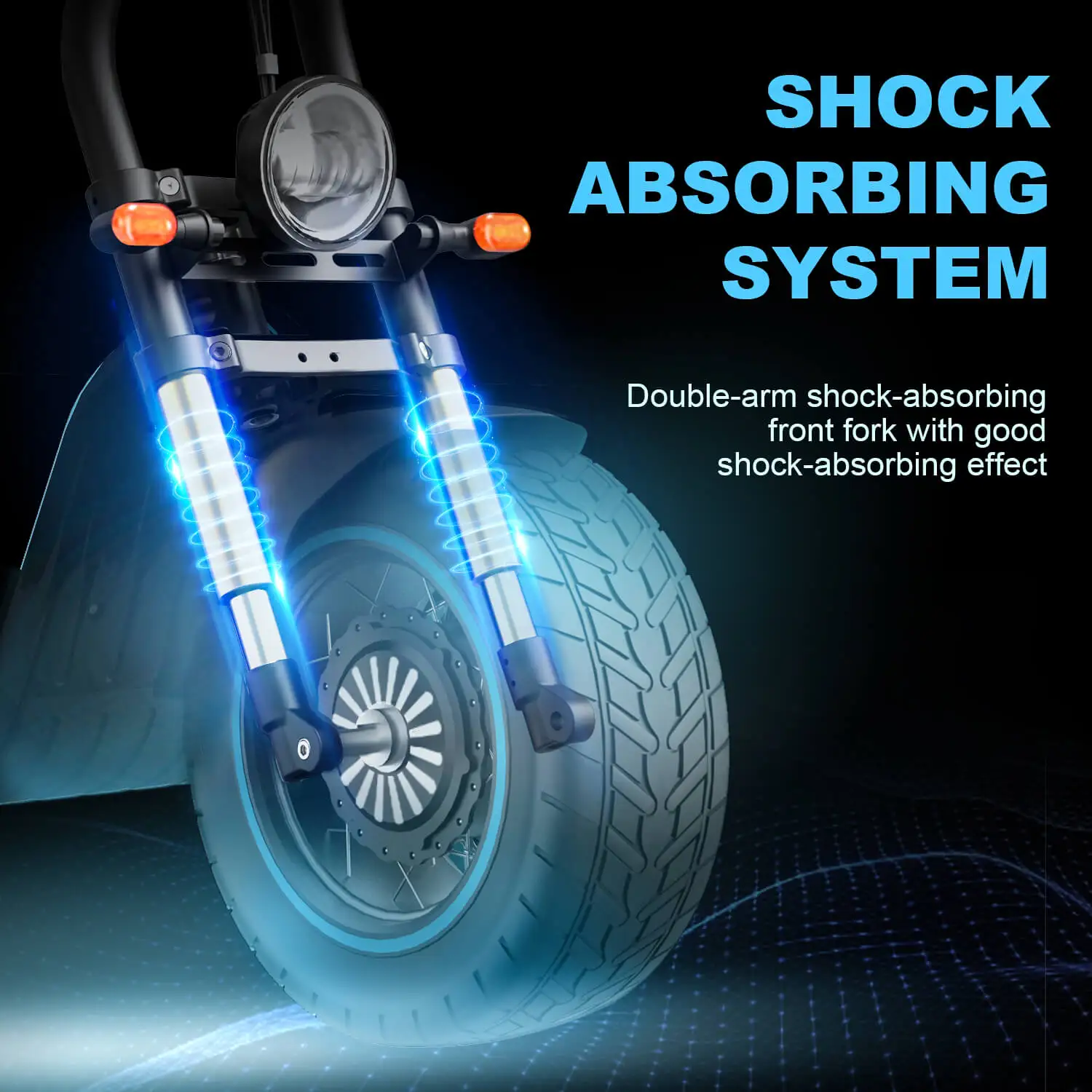 Horquilla delantera amortiguadora de doble brazo con buen efecto de amortiguación.