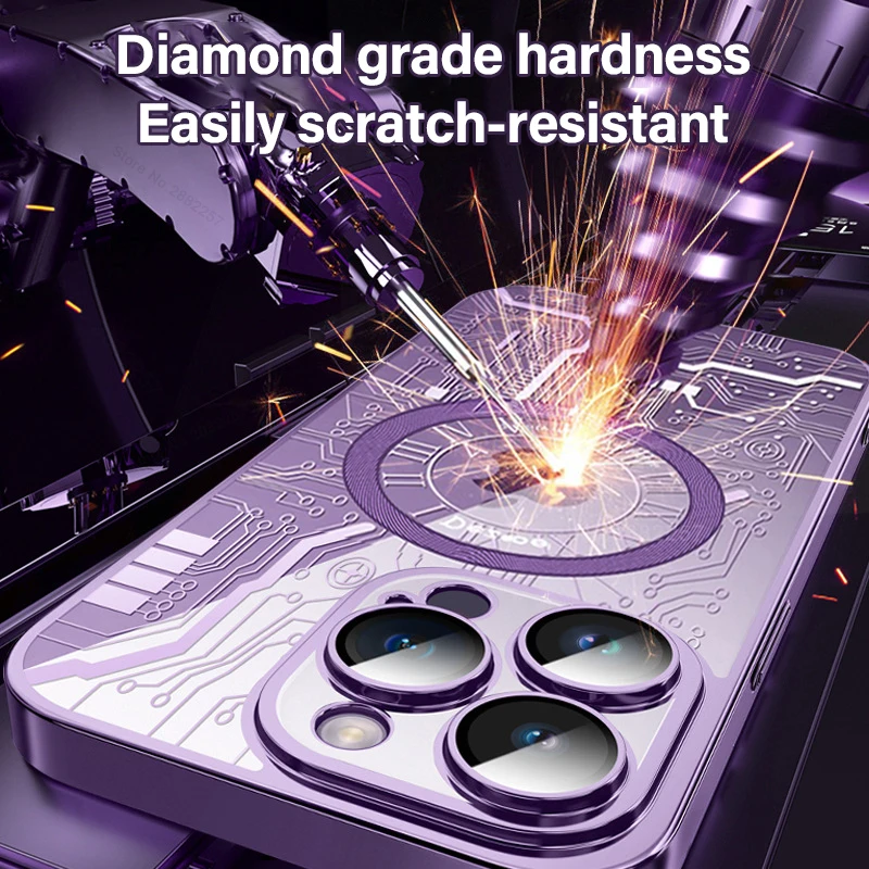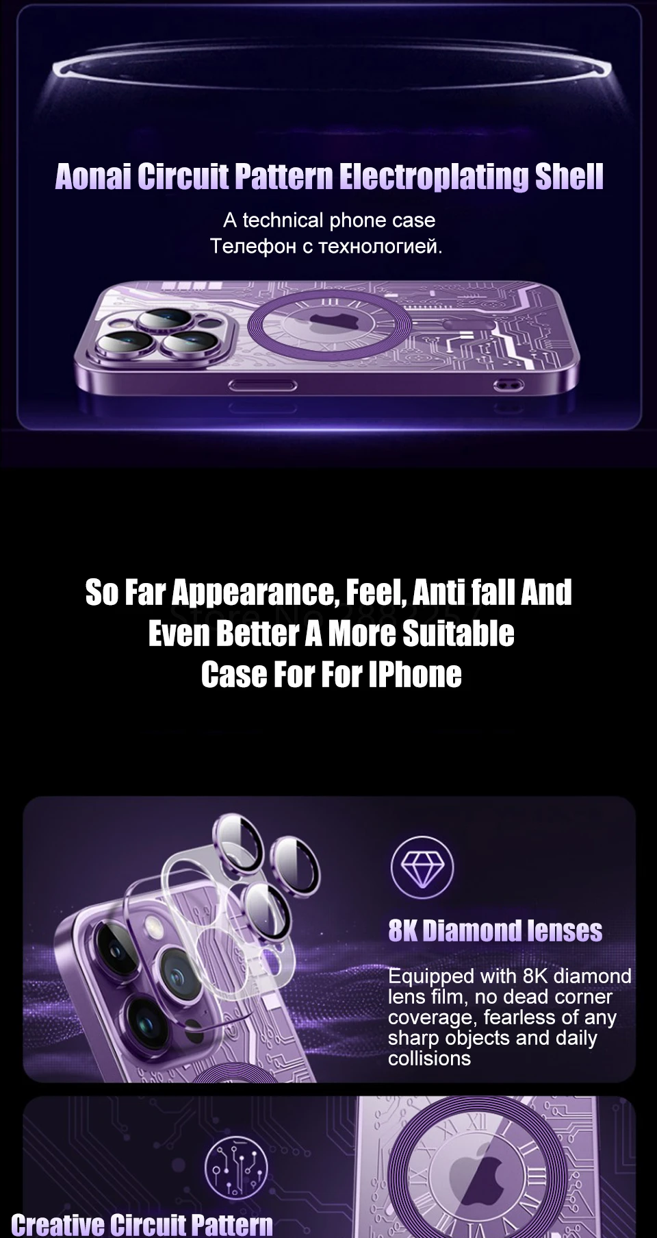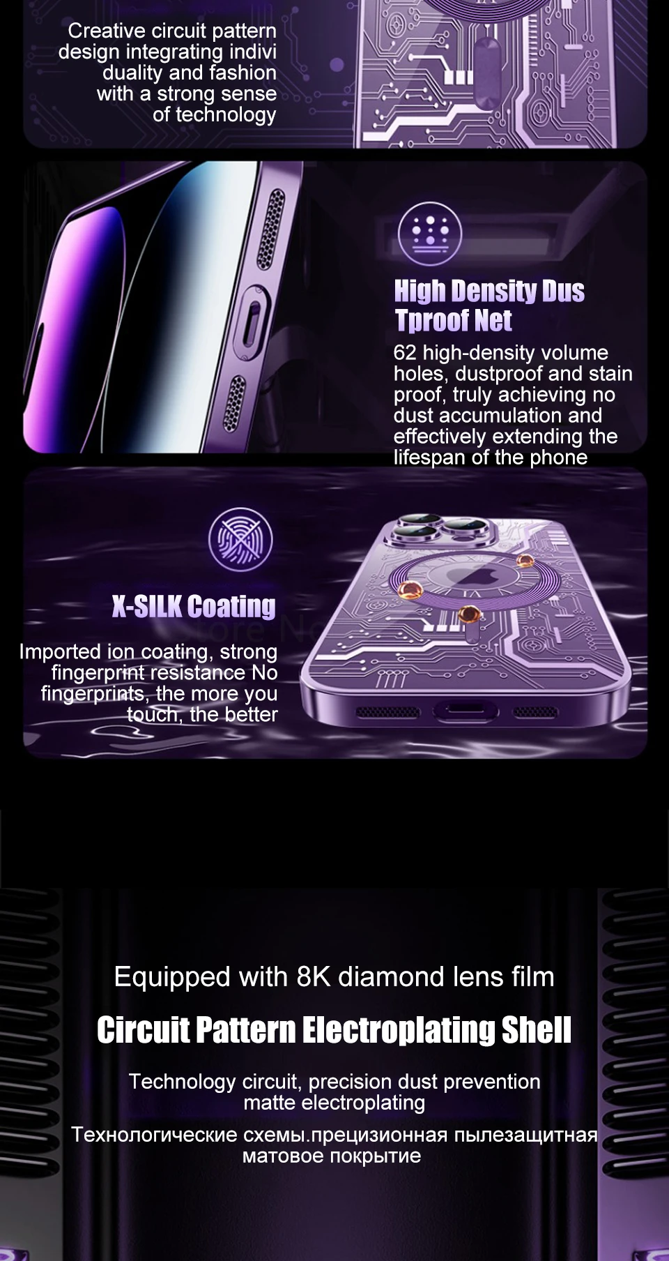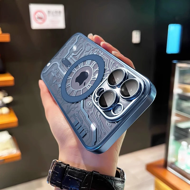 Comprar Patrón de circuito de lujo para funda Magsafe para iPhone 15 14 13 12 11 Pro Max Plus cubierta trasera de carga inalámbrica magnética chapada