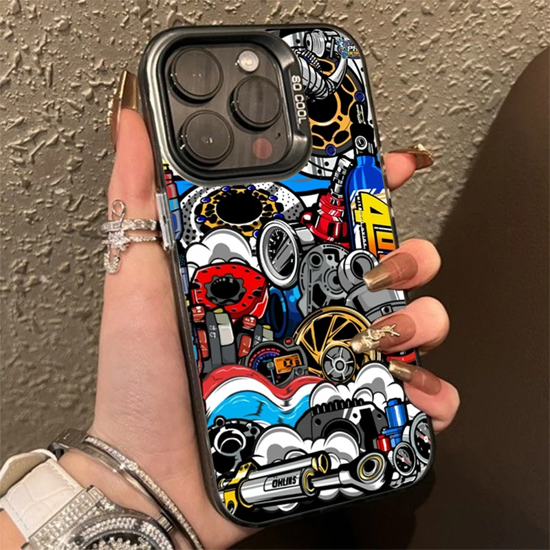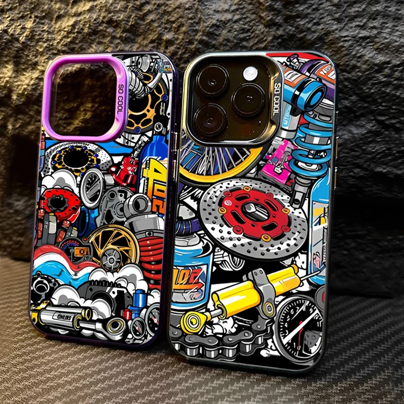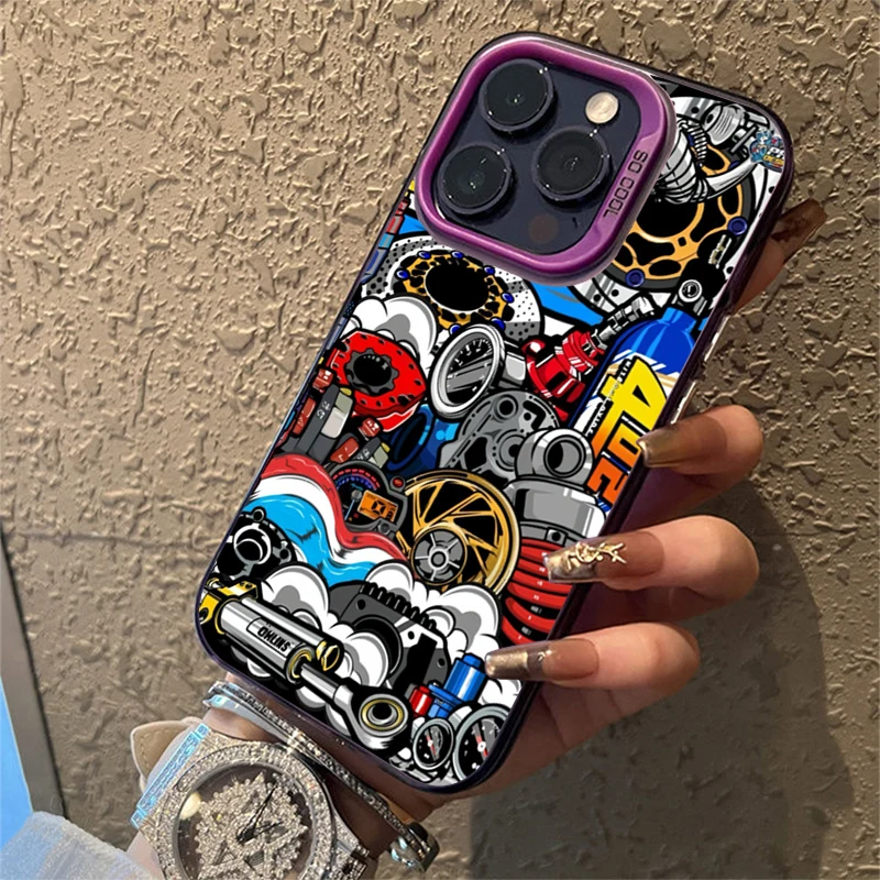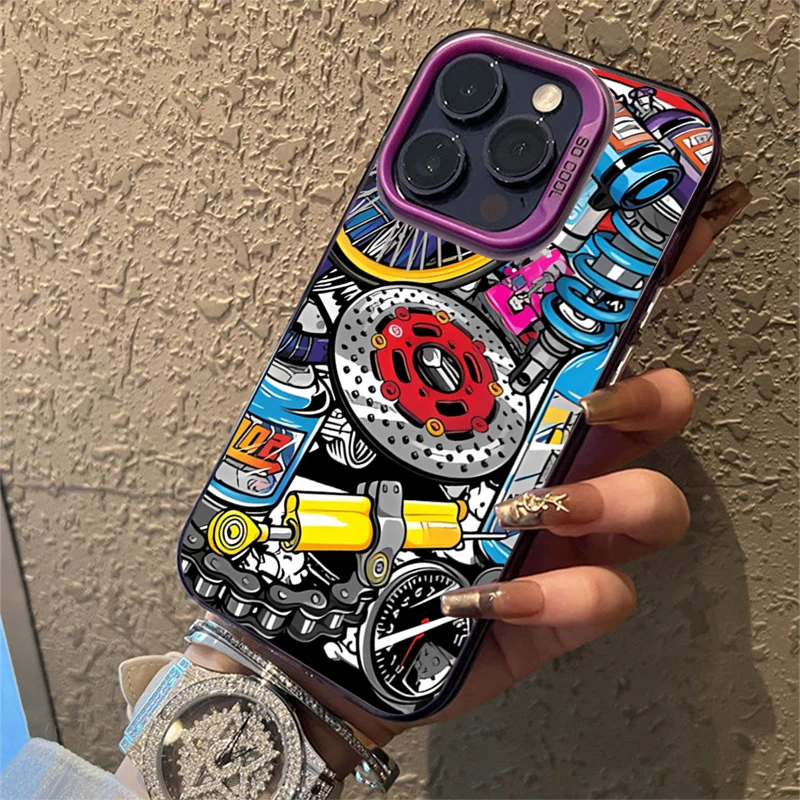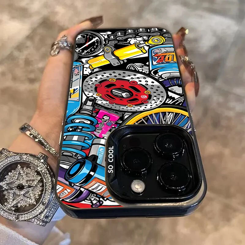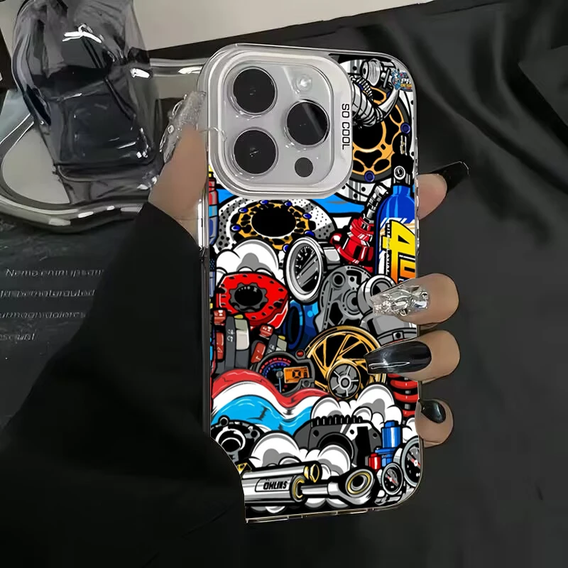 Funda de teléfono IMD plateada galvanizada con patrón de engranaje mecánico para iPhone 17 11 12 13 15 16 Pro Max 16E 7 8 Plus X XS XR SE