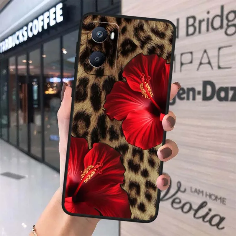 Patrón de estampado de leopardo para OPPO Reno 12 11 F 10 8 7 6 5 4 Z T Lite Plus Pro 4G 5G funda de teléfono negra