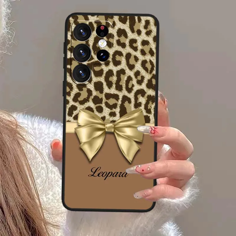 Patrón de estampado de leopardo para Samsung Galaxy S25 S24 S23 S22 S21 S20 S10 S9 S8 FE Lite Ultra Plus 5G funda de teléfono negra