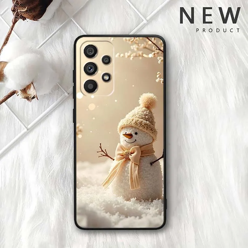 Patrón de muñeco de nieve de invierno para Samsung Galaxy A11 A12 A13 A14 A15 A16 A20E A20S A21 A21S A22 A23 funda de teléfono negra