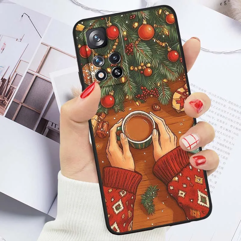 Patrón de Navidad para niñas para Xiaomi Redmi Note 11T 11 11S 11SE 10 10T 10S 9 9T 8T 8 Lite Pro Plus Max funda de teléfono negra