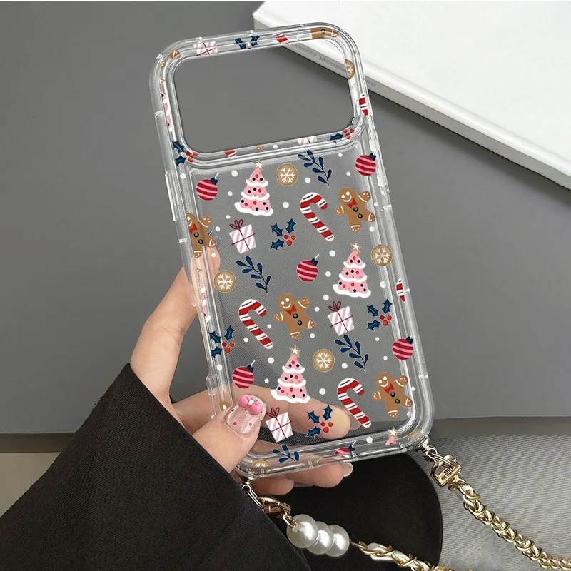 Patrón de pan de jengibre de Navidad con cadena de perlas funda de teléfono para Samsung Galaxy S24 S23 S22 Ultra Plus S25 FE A34 A33 A55 A54