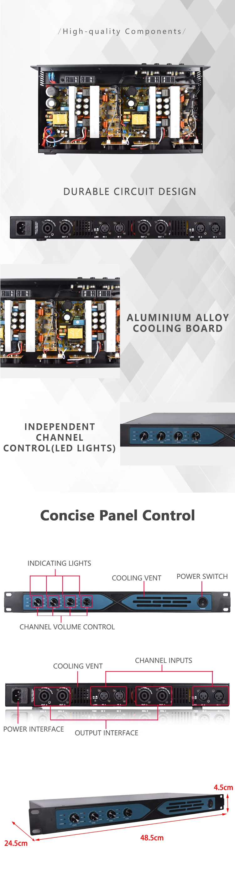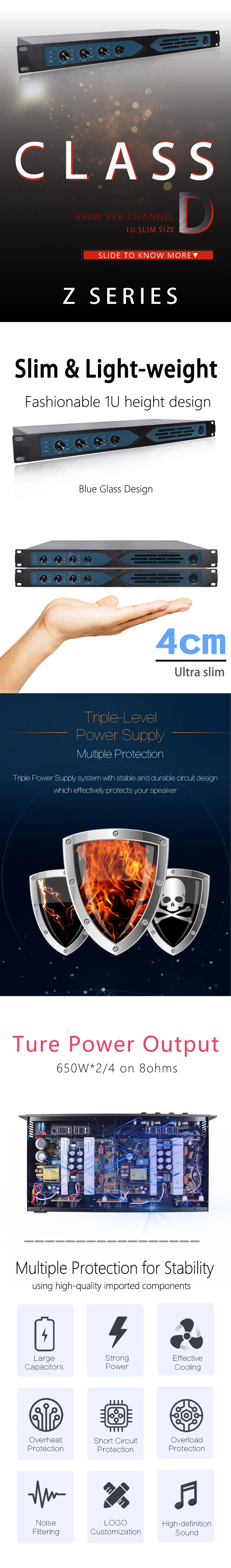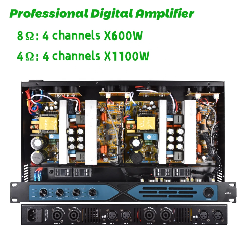 Paulkitson P650 amplificador de potencia Digital profesional 4X600W amplificador estéreo de Audio Clase D para Karaoke en casa subwoofer DJ