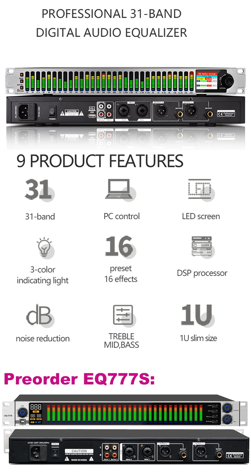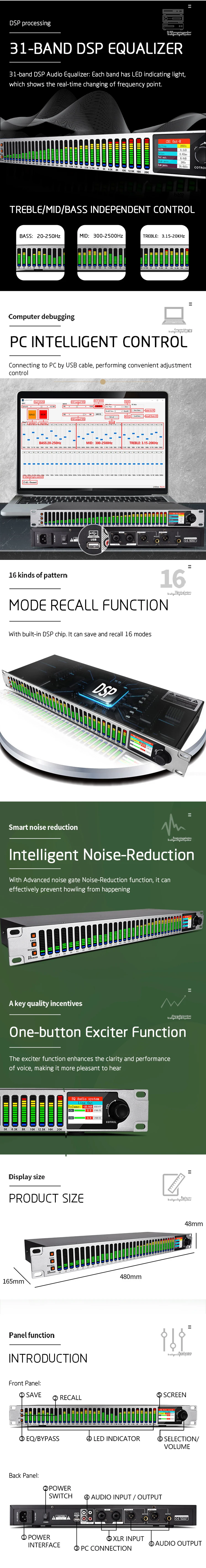 Comprar Paulkitson-ECUALIZADOR DE Audio de 31 bandas DSP, ecualizador Digital Profesional, pantalla de espectro, equipo de estudio de grabación