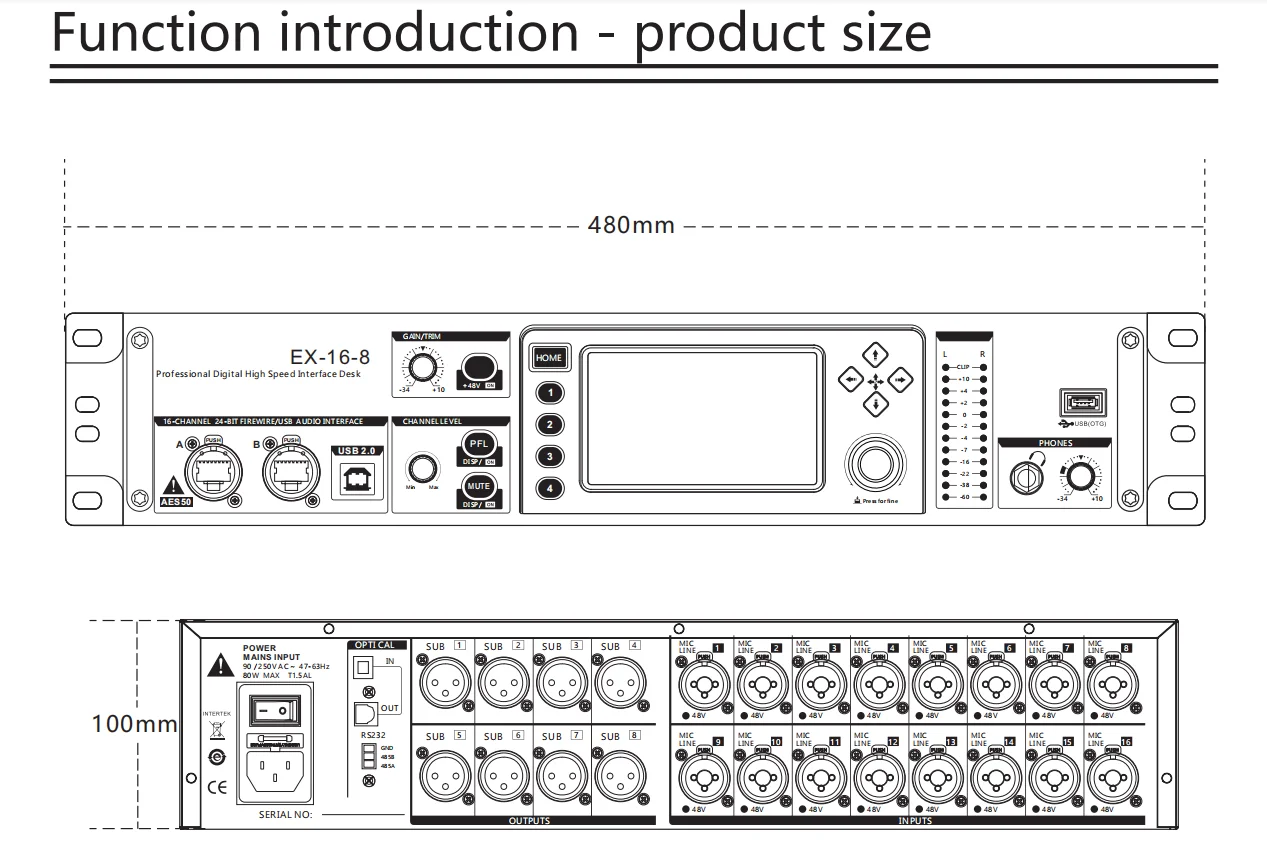 EX16-8 Can be used independently as a rack-mounted digital mixer.