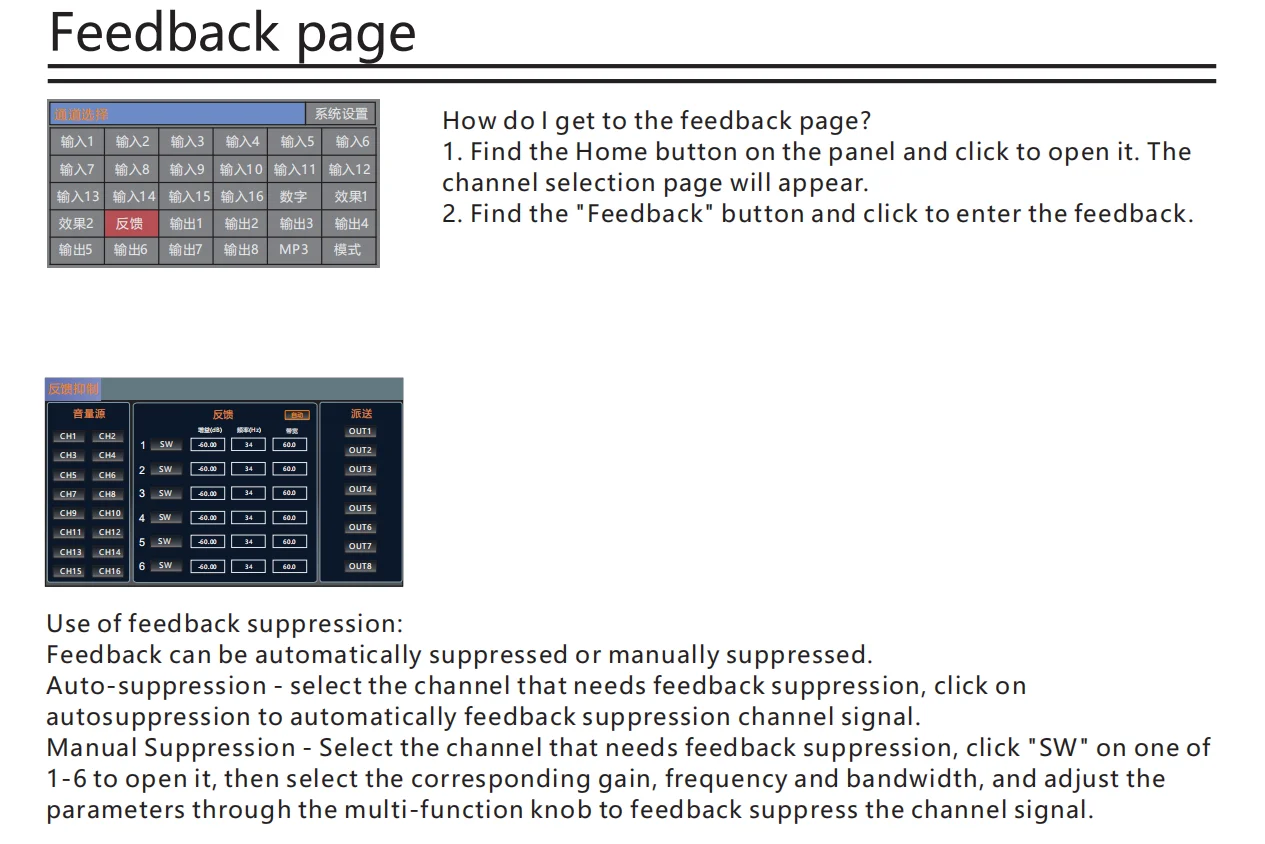 •・Built-in feedback suppressor
