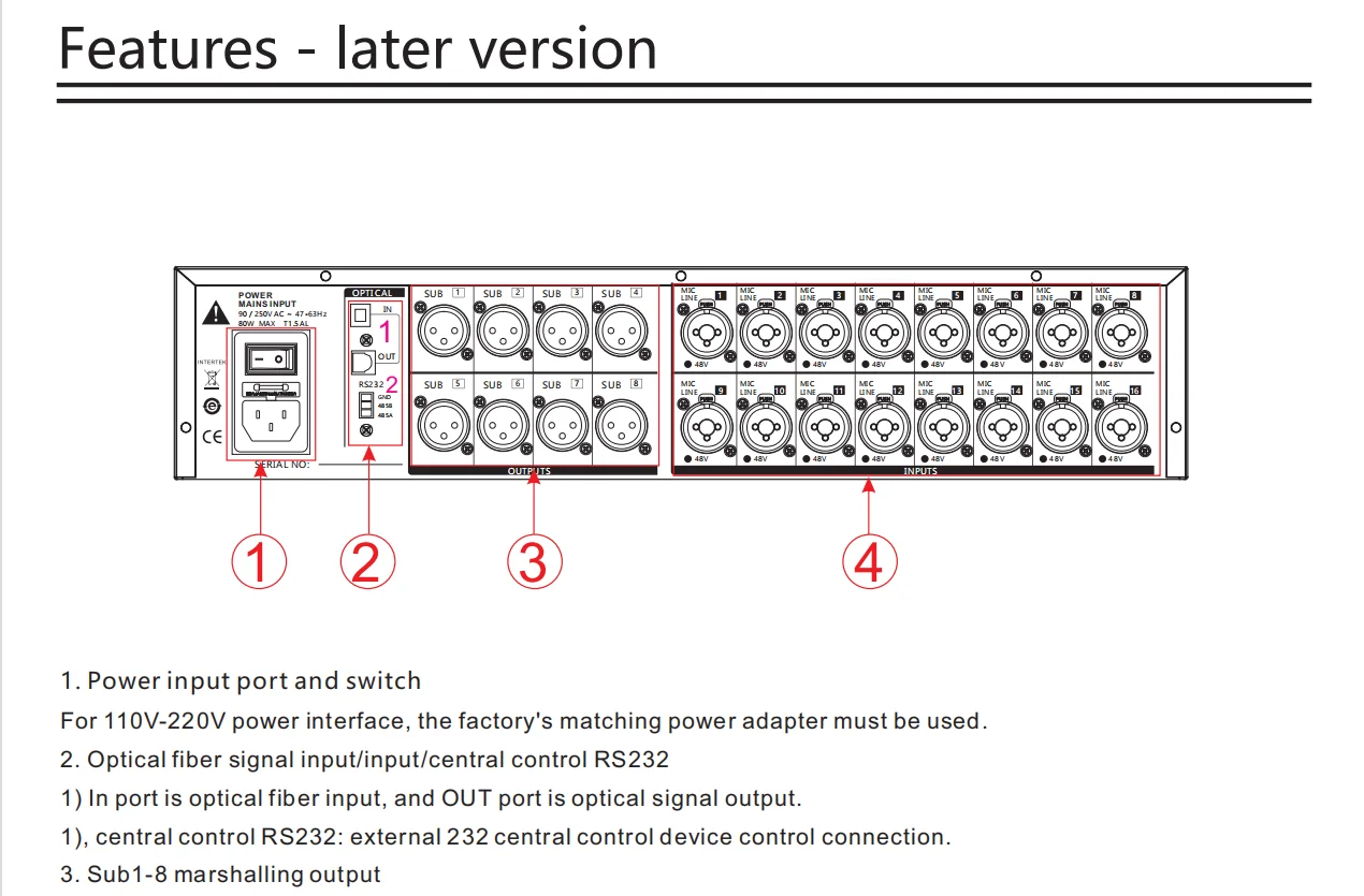 •・18-channel signal input (16-channel MIC/Line input 1 set Digital input: optical fiber/sound card, MP3)