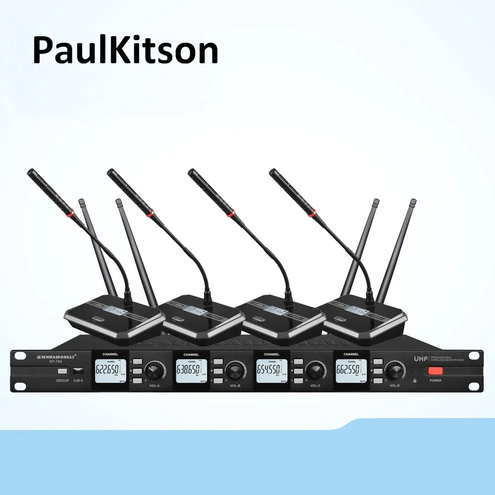 Comprar Paulkitson-micrófono Digital profesional KP740, accesorio inalámbrico de 4 canales, UHF, con cuello de cisne, para reuniones
