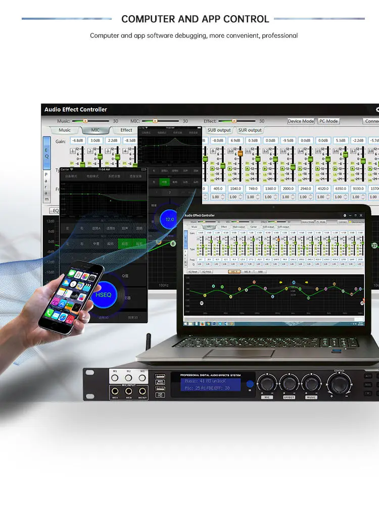 Procesador de audio digital AP880 DSP, procesador de efectos de altavoz de Karaoke Profesional, sistema de audio WIFI USB