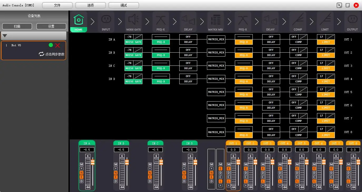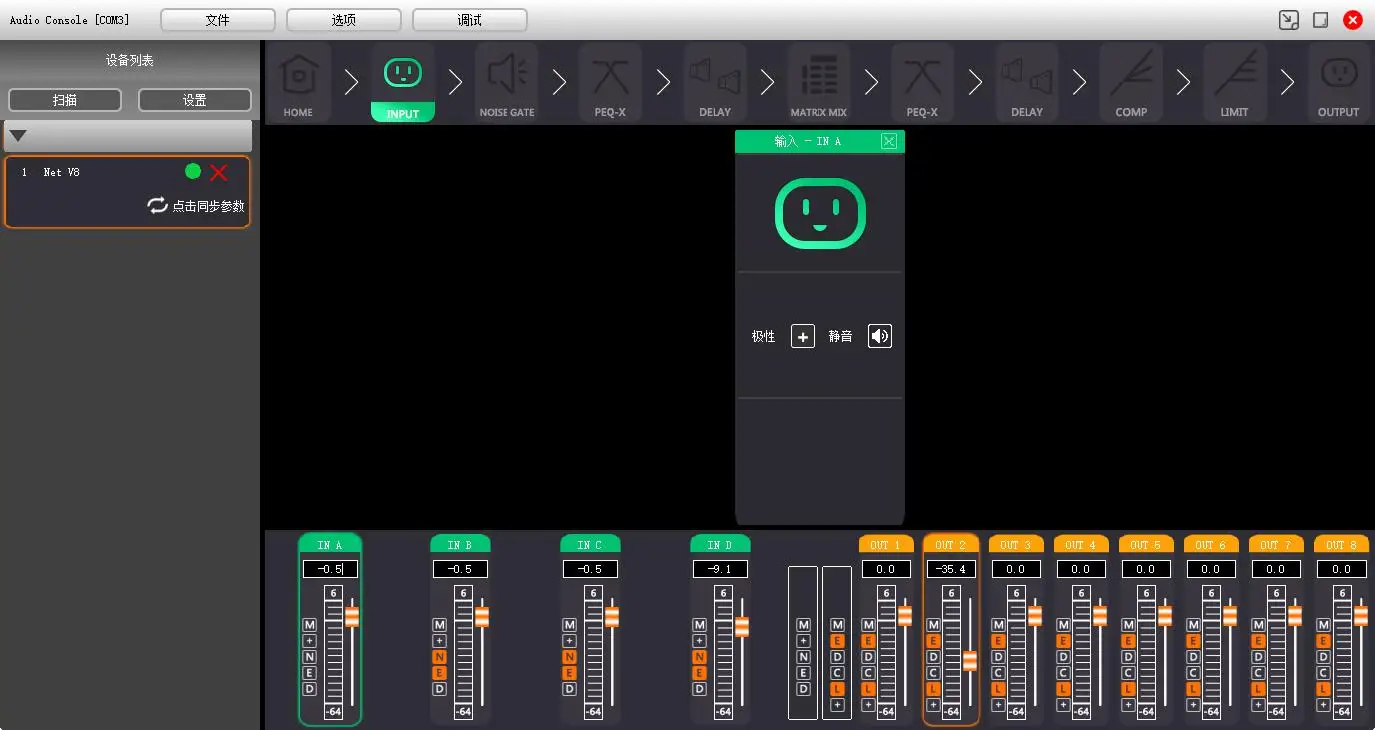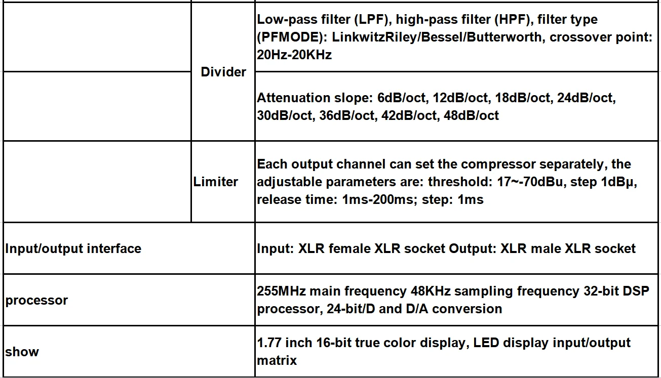 ● Cada canal de salida está equipado con ecualización paramétrica de 11 bandas, las características del filtro son opcionales y el valor Q puede alcanzar hasta 60